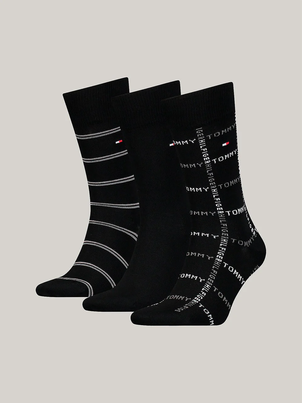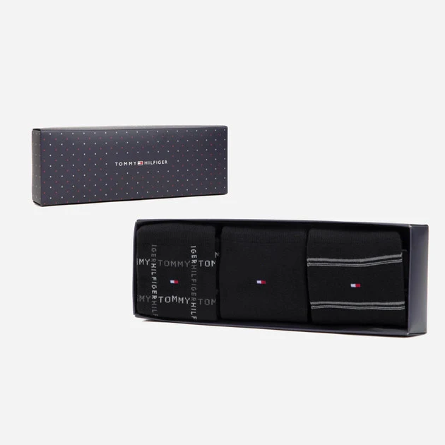 Gli uomini saranno orgogliosi di indossare questo lussuoso set di 3 calze Tommy Hilfiger. Composto da una calza nera, una in fantasia e una a strisce, disponibile anche nella variante in blu, questo set da uomo รจ realizzato in una miscela di cotone, poliammide e elastan che รจ comoda, resistente e che mantiene il piede caldo. Che sia fashion o casual, queste calze sono perfette in ogni situazione! Codice articolo 24445