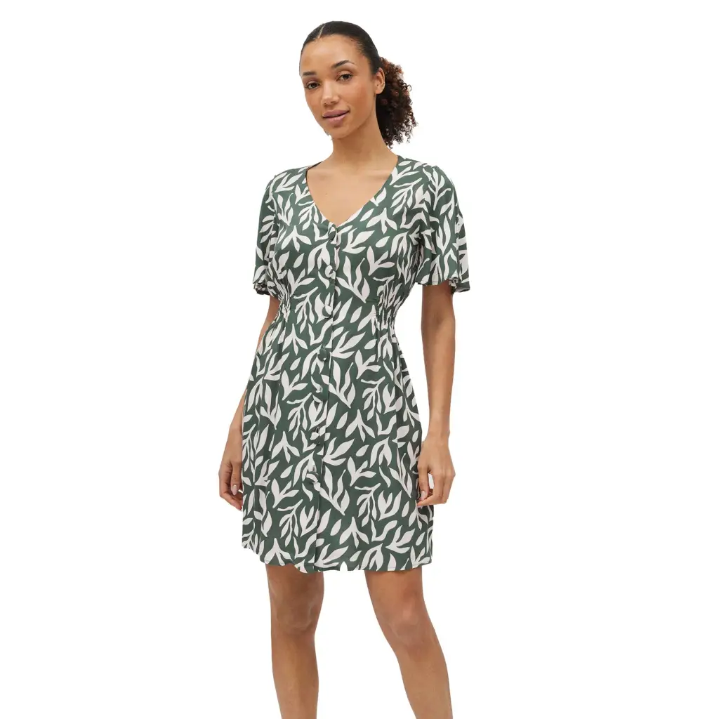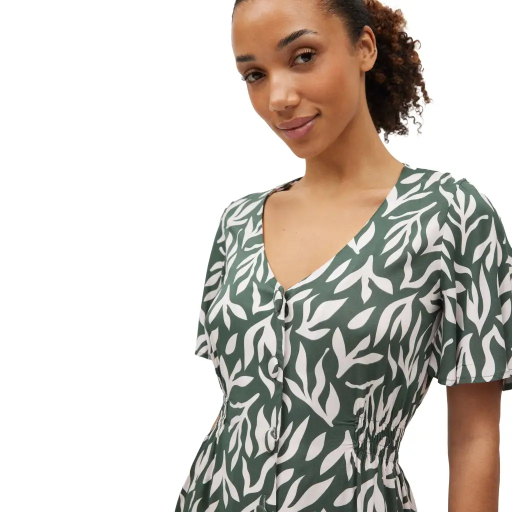 Abito a chemisier aperto davanti in viscosa della linea Yasbel Mora. Questo abitino, in una graziosa e moderna stampa di foglie è fresco e morbido, grazie al tessuto in pura viscosa. Leggermente ripreso in vita, è molto morbido sul fianco, per non segnare la figura. Per un look glamour e di tendenza è abbinabile al costume intero e al bikini della stessa linea.