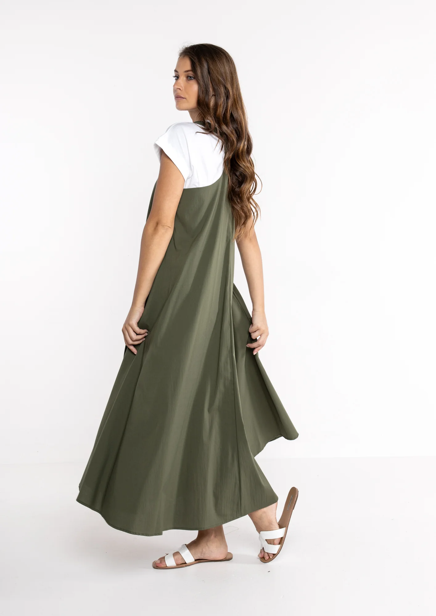 Abito donna in cotone, perfetto per l’estate con la sua trama fresca e traspirante. Il colore verde militare conferisce un tocco sofisticato e versatile, ideale per creare look casual o piรน ricercati. Pratico e confortevole da indossare tutto il giorno, si adatta facilmente a qualsiasi occasione. Un capo essenziale che combina stile e funzionalitร  per il tuo guardaroba estivo.