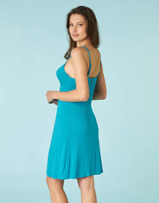 Aggiungi un tocco di freschezza al tuo beachwear con questo abitino in jersey di viscosa ottanio chiaro. Il tessuto leggero e morbido, arricchito con elastan, offre una vestibilitร comoda e fluida, ideale per le calde giornate estive. Le spalline sottili e il motivo oblรฒ decorativo sottoseno donano un look femminile e raffinato, mentre l’accessorio al centro seno aggiunge un tocco di originalitร al design essenziale. Perfetto per le tue giornate in spiaggia o per una passeggiata estiva, questo abitino diventerร il tuo must-have per la stagione.