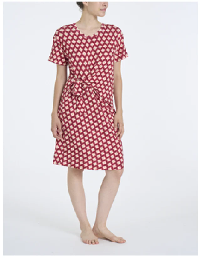Abito da donna corto a manica corta e con girocollo, con nodo in vita regolabile.