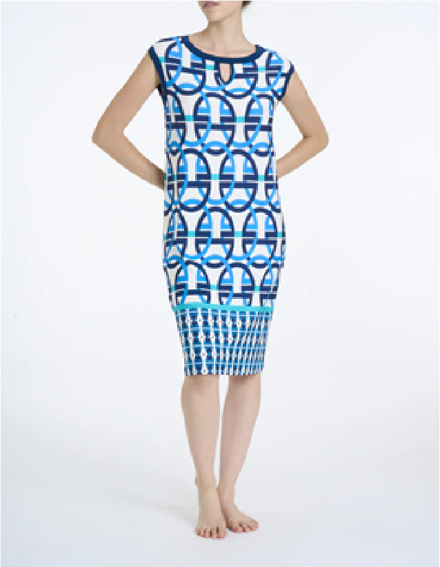Abito da donna con giro collo e con spalla larga, un abito fresco adatto ad ogni tipo di silhouette.
