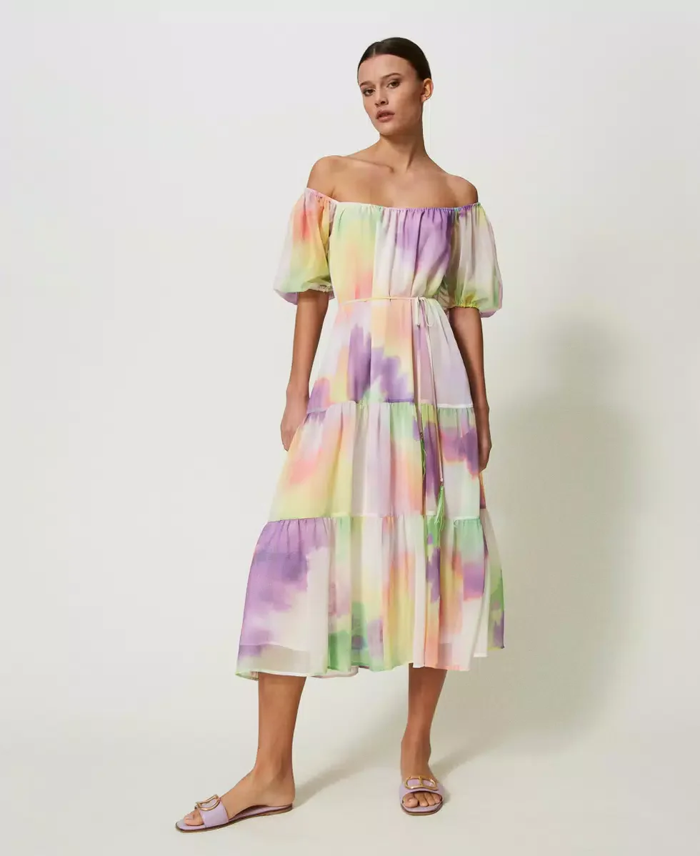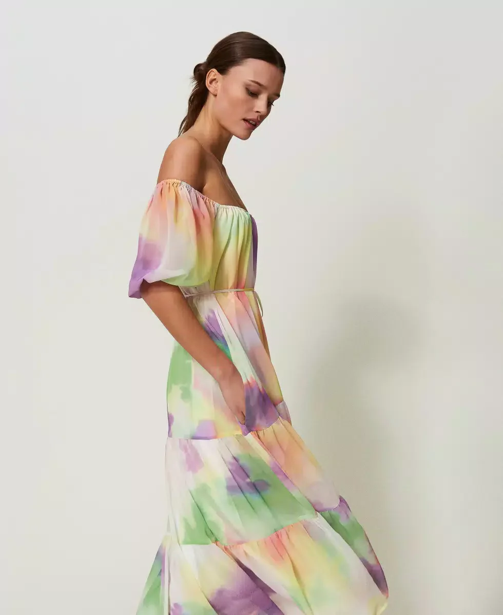 Esalta la tua femminilitร con l’elegante abito Twinset, realizzato in un raffinato tessuto multicolore. Il design lungo e le balze aggiungono un tocco di raffinatezza, mentre la cintura in vita sottolinea delicatamente la tua silhouette. Realizzato al 100% in poliestere, รจ il capo perfetto per un look di lusso.