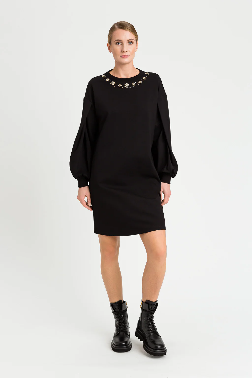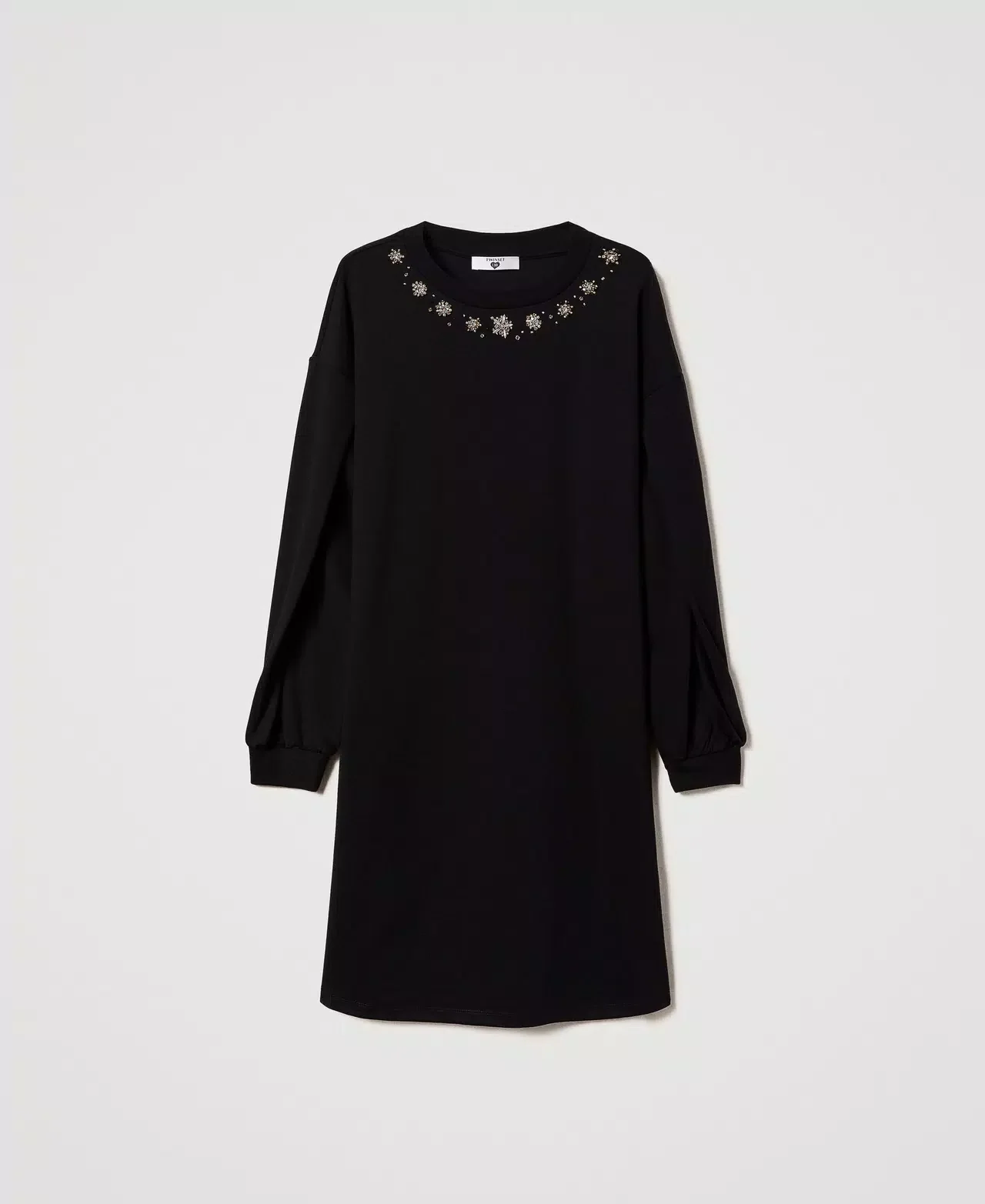 L’abito nero TWINSET รจ un’esclusiva creazione elegante, destinata a donare esclusivitร alle donne che amano i dettagli ricercati. La scollatura รจ arricchita da graziose applicazioni di strass che daranno un tocco sofisticato al tuo look. Indossalo per sentirti unica! Codice articolo 232LI2PJJ