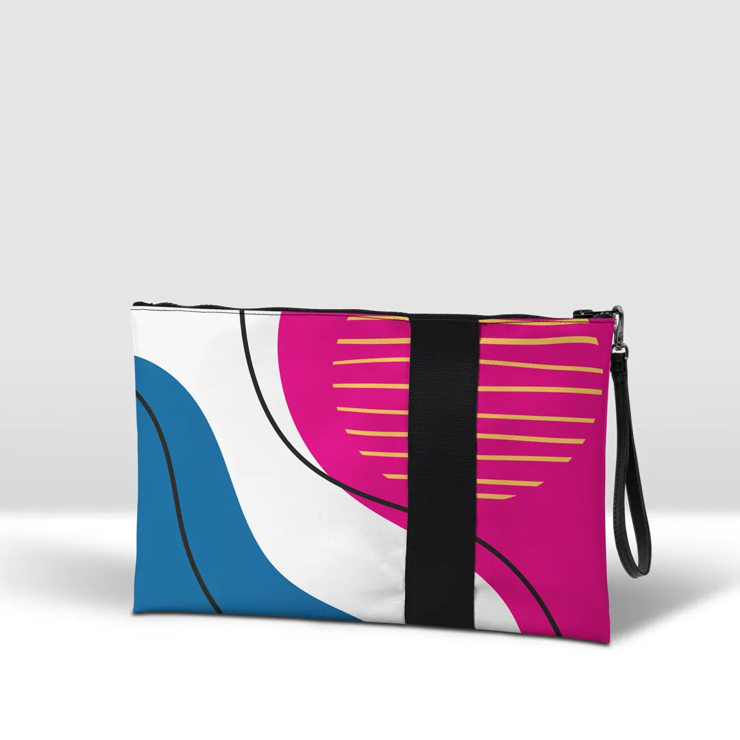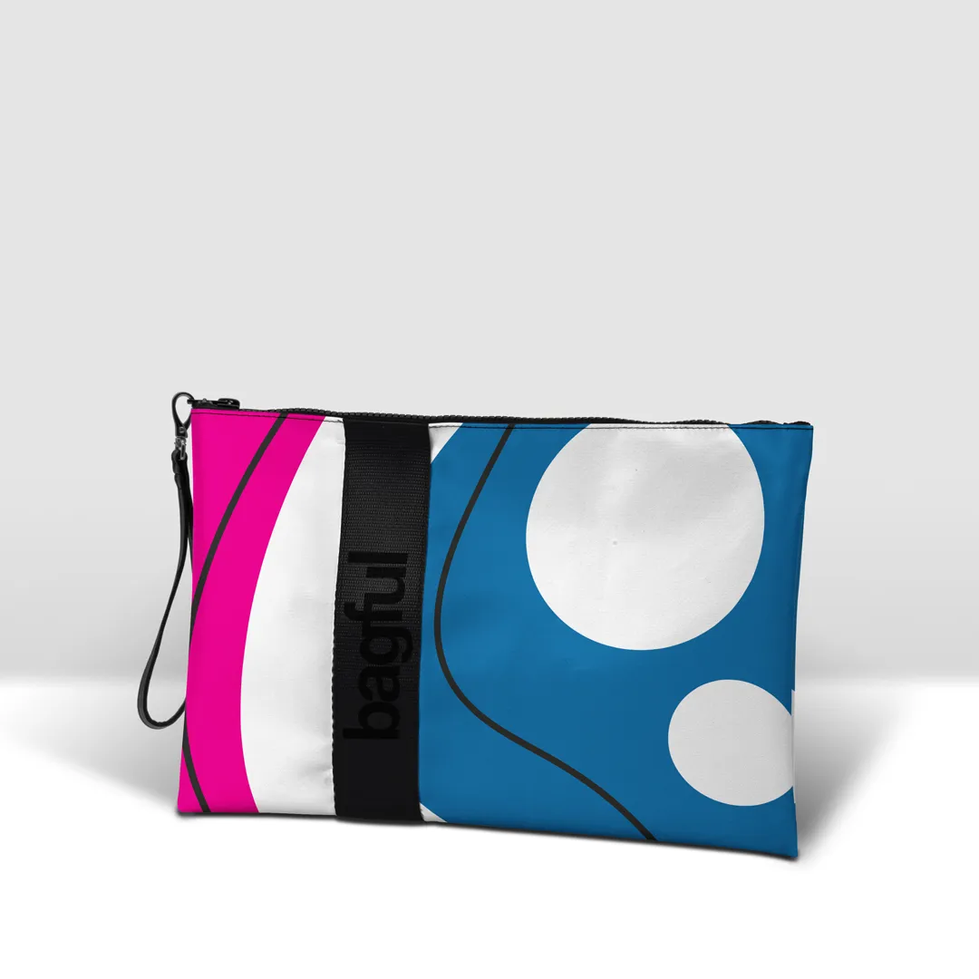Pochette in banner PVC 560, stampato, con zip pressofusa.