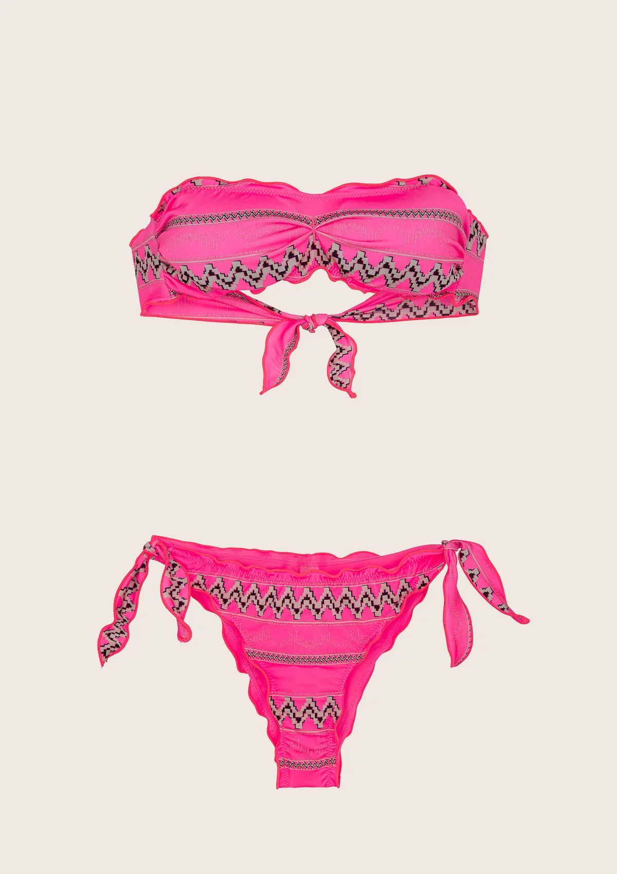 Il bikini donna Effek รจ un capo elegante e sofisticato, perfetto per le giornate di sole in spiaggia. Realizzato in morbida Lycra fantasia, il top fascia con slip nodi regolabile si adatta perfettamente a tutte le forme del corpo. Il bikini รจ arricciato sui bordi e dotato di imbottitura interna e laccetti removibili, per una vestibilitร personalizzata e confortevole. Un must-have per ogni amante del lusso e dello stile raffinato.