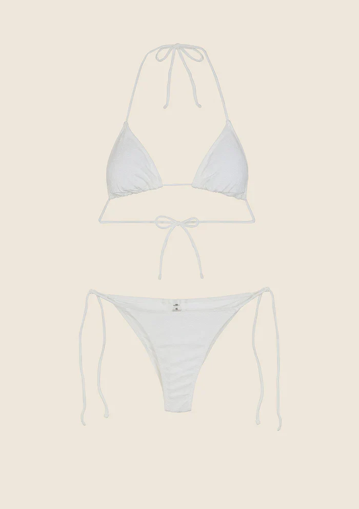 Divertiti al mare con il bikini F**K Effek FK25-1140WH! Realizzato in lycra crepe, รจ dotato di slip regolabile per una vestibilitร perfetta. Inoltre, la parte superiore ha imbottitura interna estraibile per un sostegno ottimale, mentre il design a triangolo aggiunge un tocco di stile. Stai pronta a fare colpo in spiaggia!