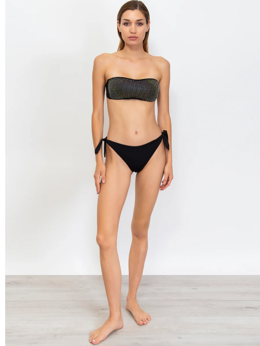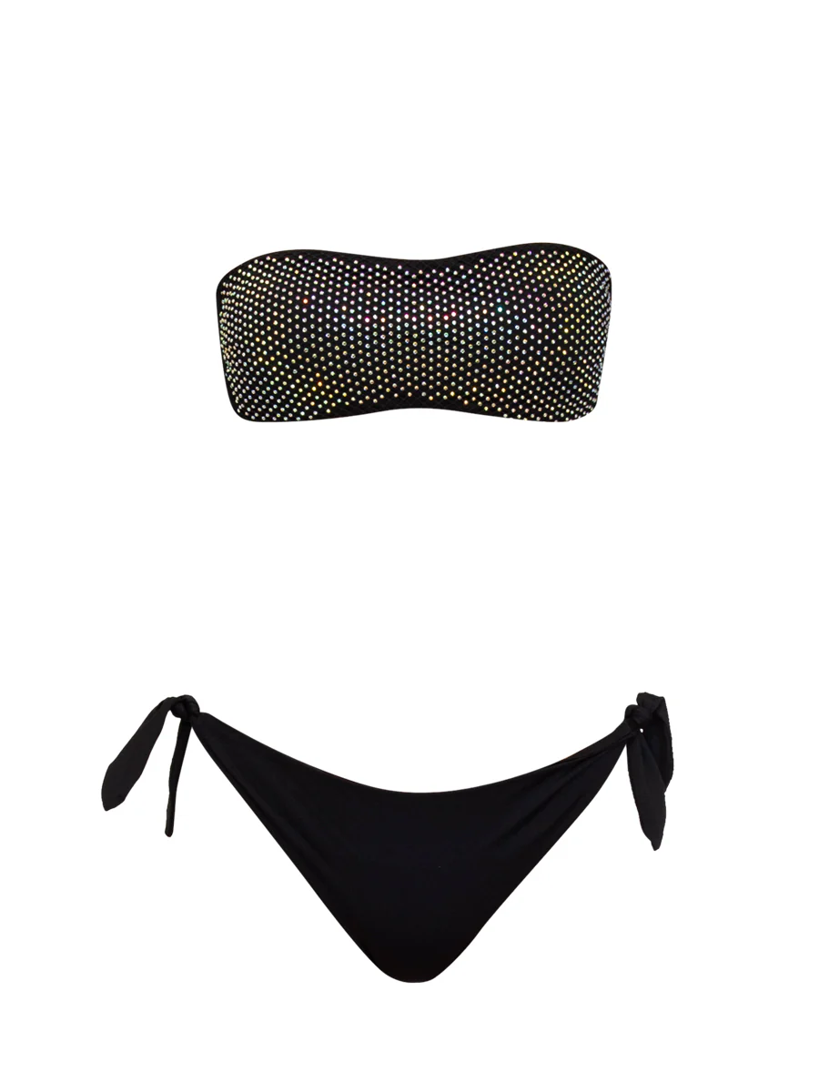 Esalta la tua bellezza con il bikini donna Verdissima. Con il suo slip regolabile e il reggiseno a fascia decorato con strass luminosi, ti farร risplendere sulla spiaggia. Goditi un’estate di eleganza e comfort con l’imbottitura estraibile.
