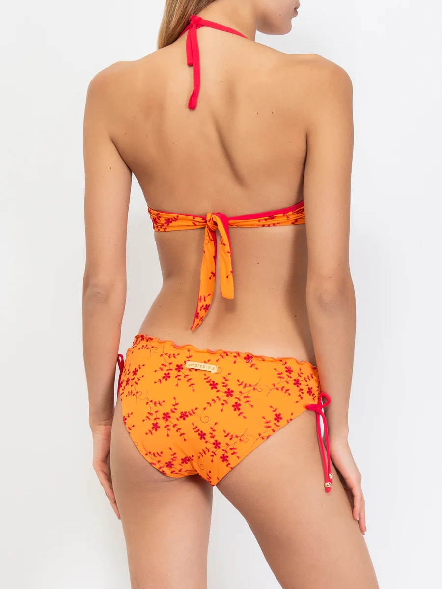Dai un tocco di colore alla tua estate con il Bikini donna Verdissima! Il reggiseno push-up con ferretti e imbottitura estraibile ti garantirร  un look perfetto, mentre il vivace arancione e i ricami rossi creano un contrasto accattivante. Con lo slip fisso, sarai pronta per un’estate di sole e divertimento!