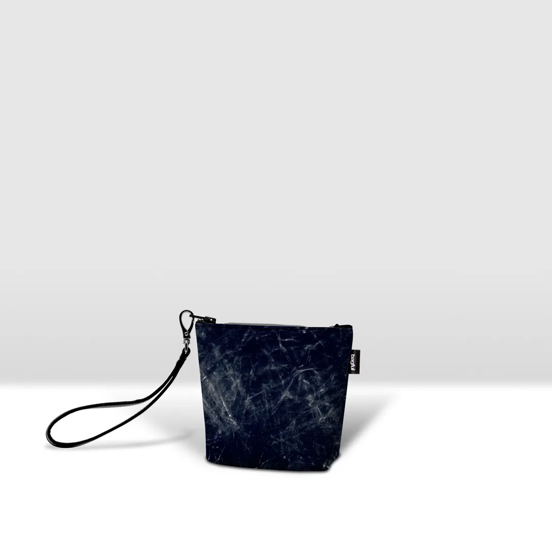 Mini pochette in banner PVC 560, stampato, con zip pressofusa.