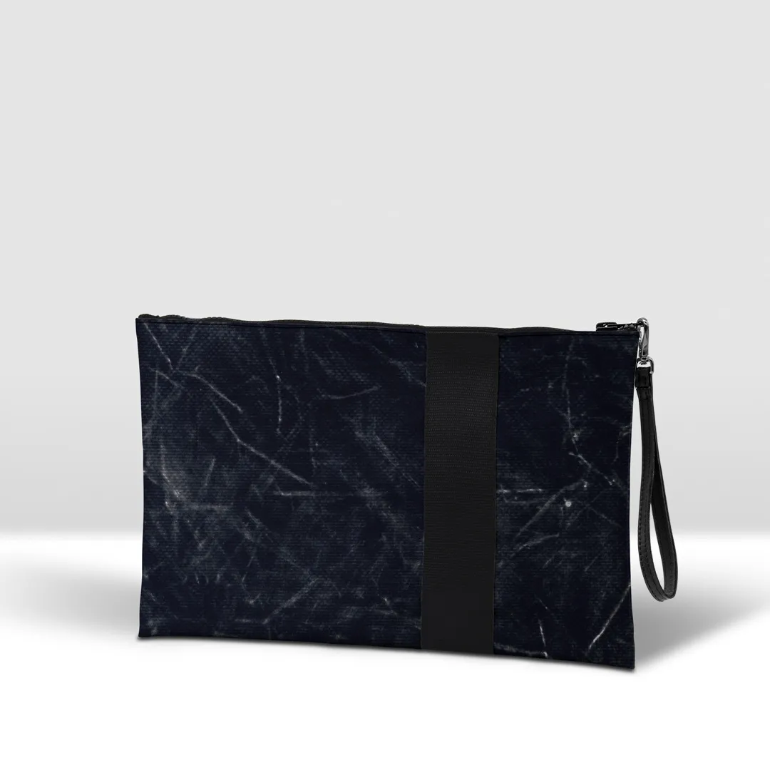 Pochette in banner PVC 560, stampato, con zip pressofusa.