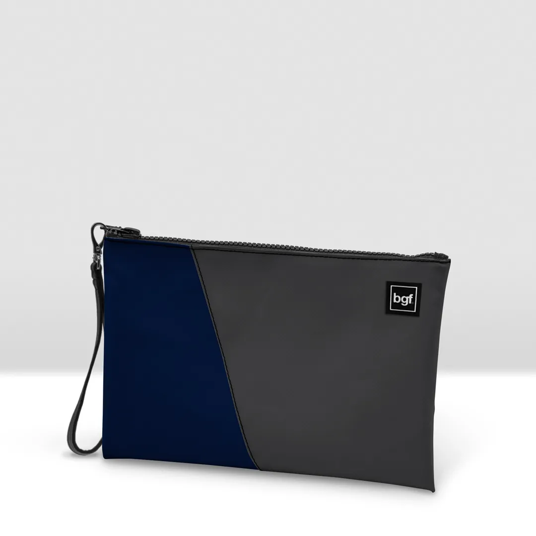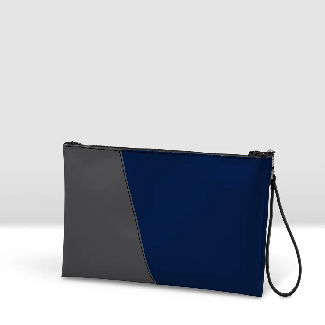 Pochette in banner PVC 560, due colori accoppiati con cucitura a vista.