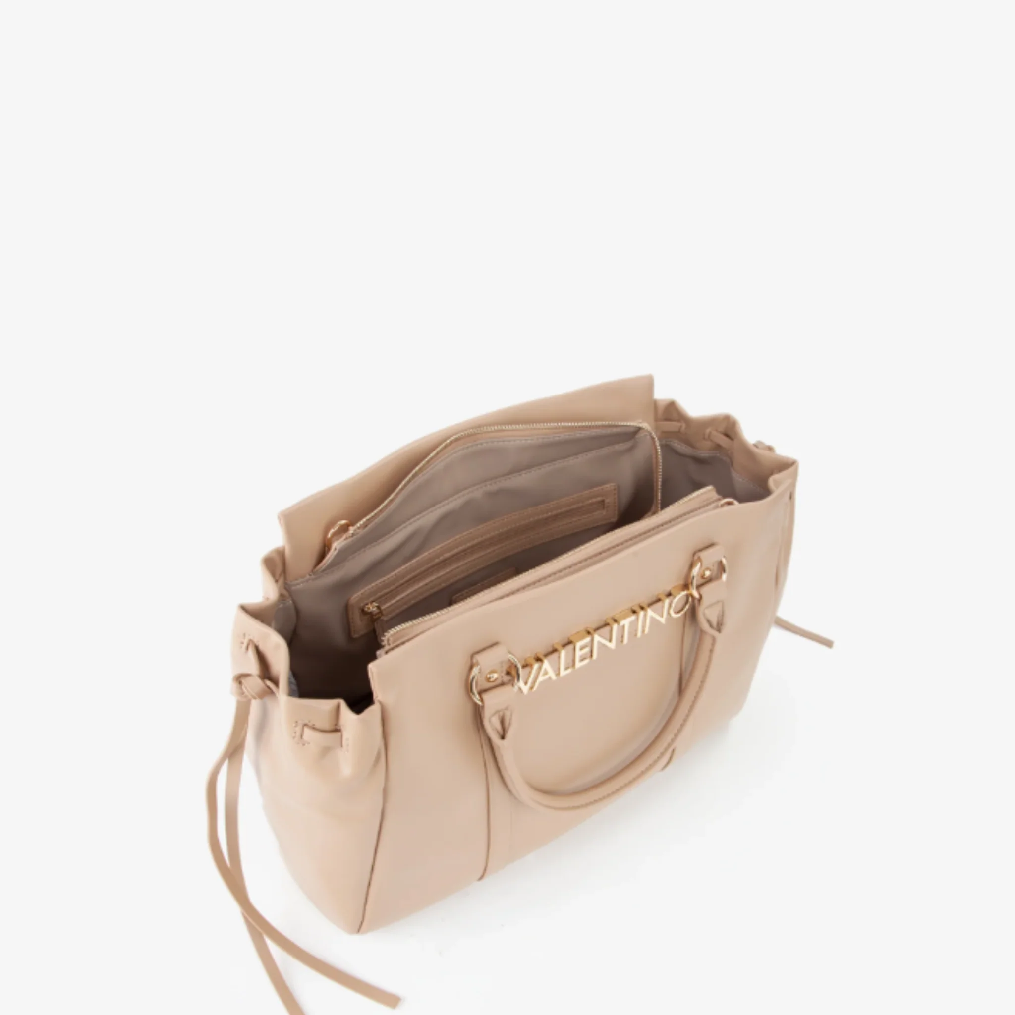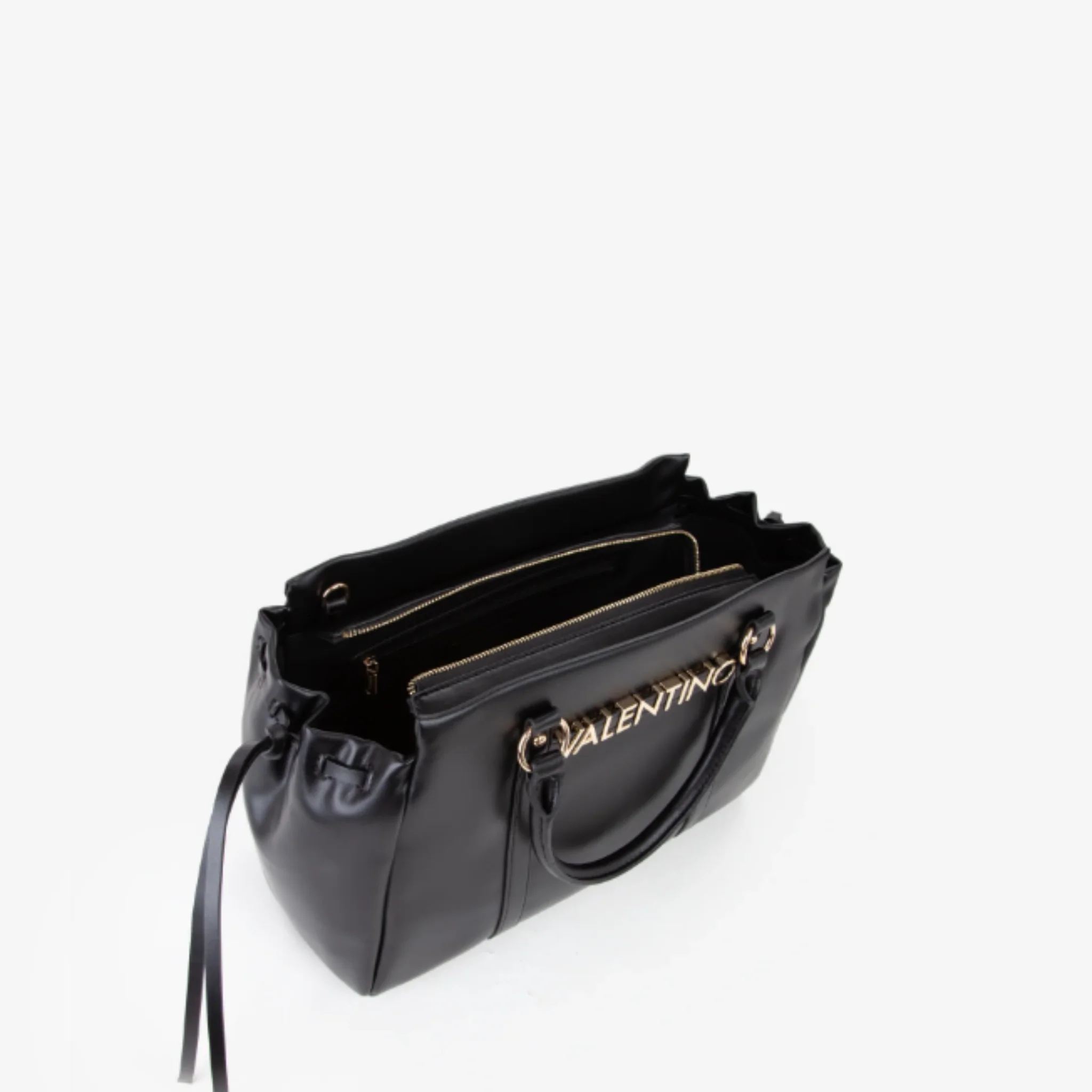 Realizzata in poliuretano effetto pelle liscia, combina un design sofisticato con dettagli di carattere, come il logo VALENTINO frontale in metallo dorato. La struttura ampia e versatile la rende ideale per accompagnarti durante la giornata, dal lavoro al tempo libero.