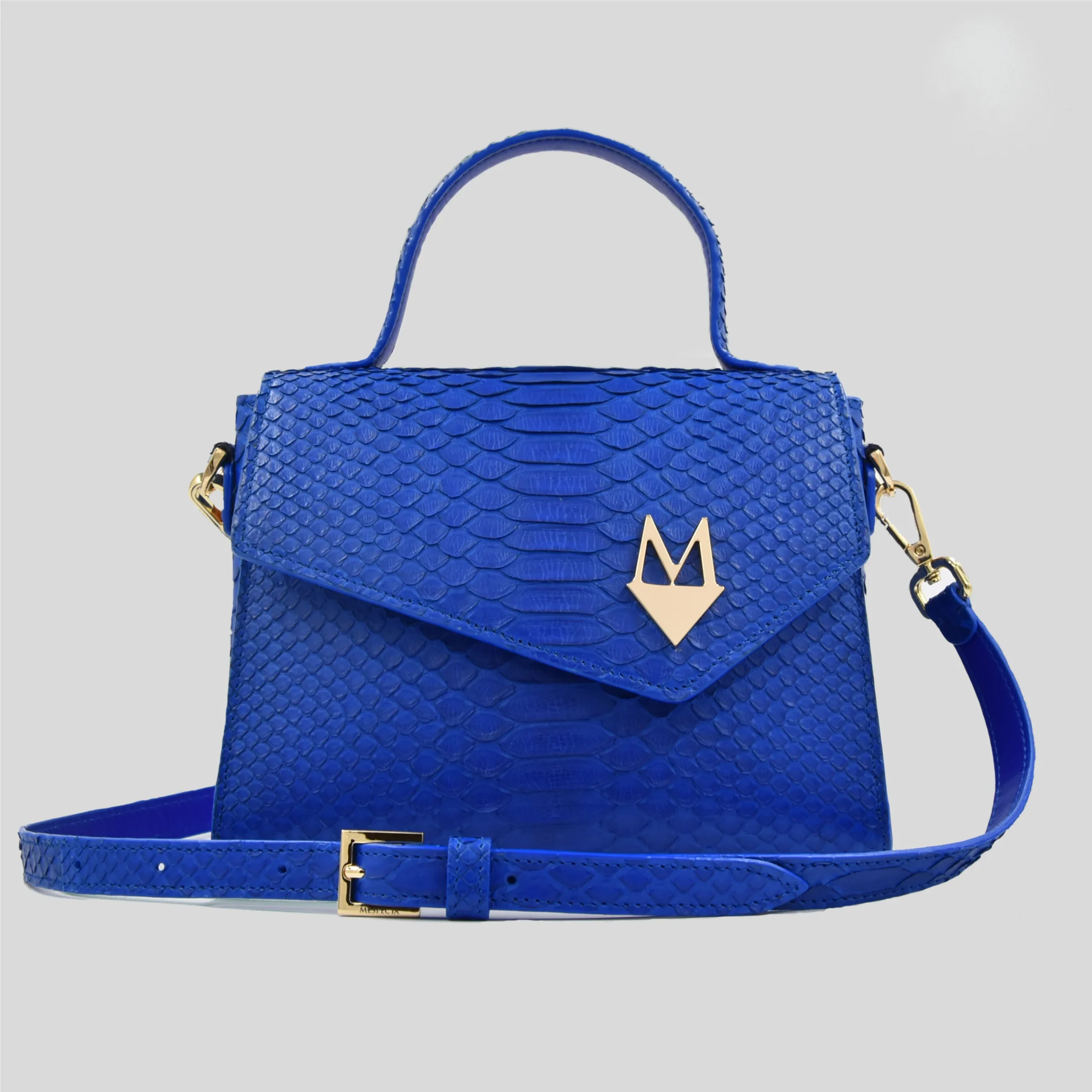 Borsa “Eccelsa” in vera pelle di Pitone Blu Cobalto