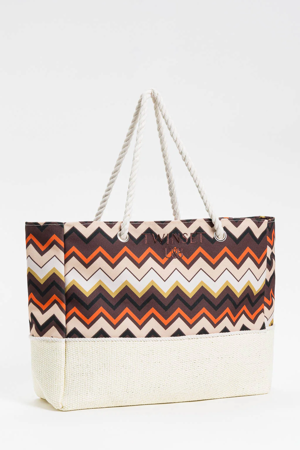 Con la borsa mare donna Twinset sarai pronta per la spiaggia! Una borsa mare grande, multicolor, con il logo ricamato sul davanti. ร anche molto capiente, perfetta per portare con te tutto il necessario, e si chiude facilmente con un bottone. Con un pratico taschino interno per tenere i tuoi oggetti importanti al sicuro.