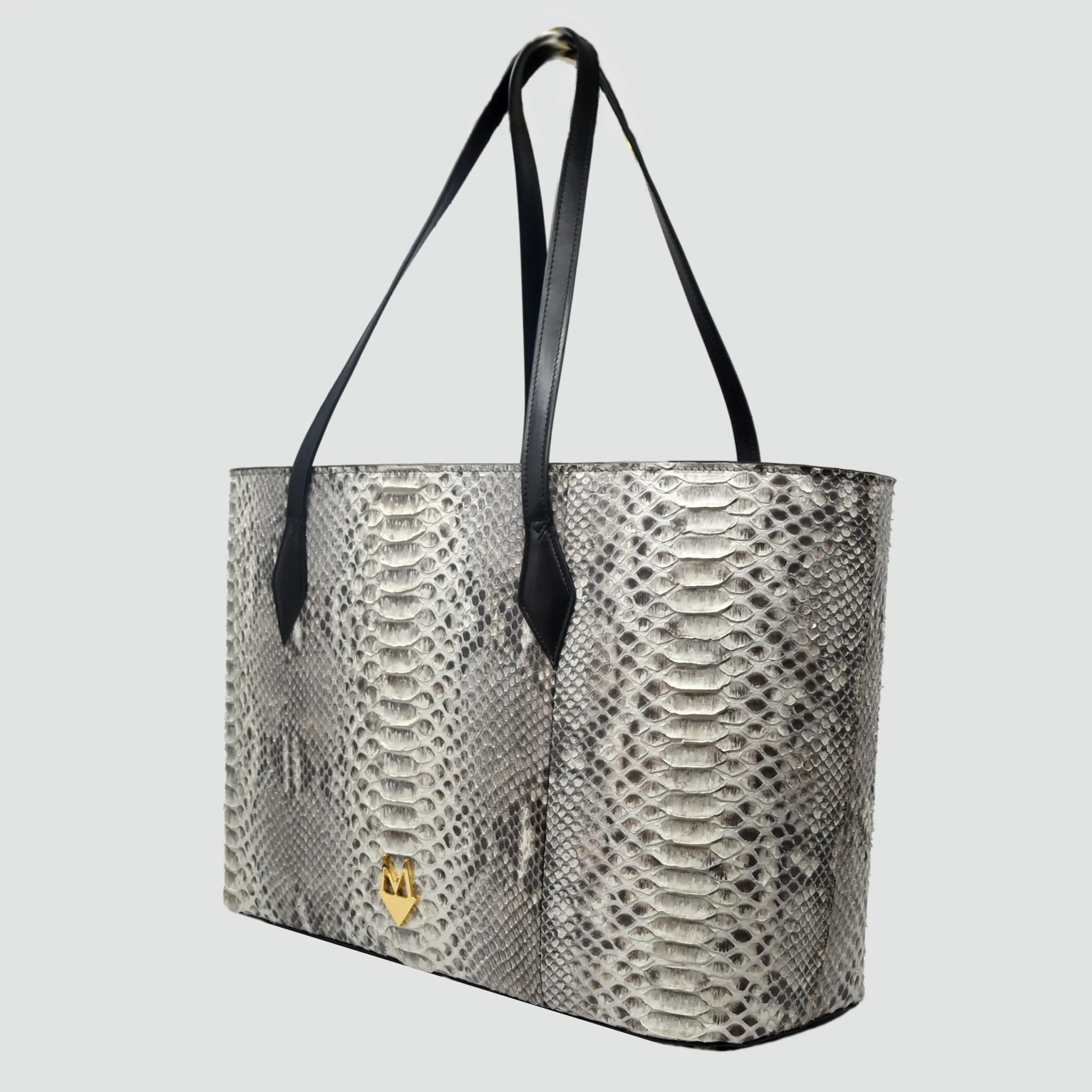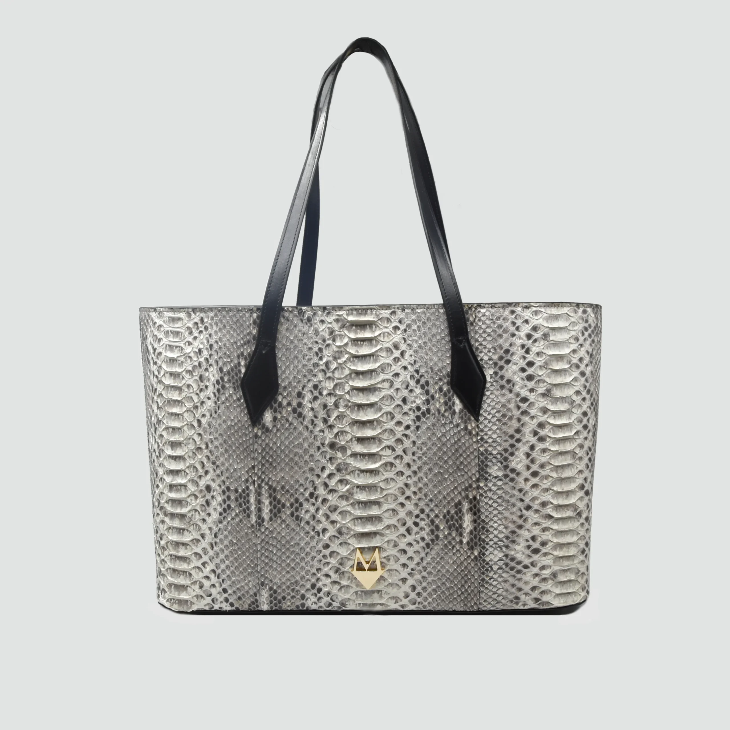 Borsa Shopper “Grandiosa” in vera pelle di Pitone Bianco Marmo