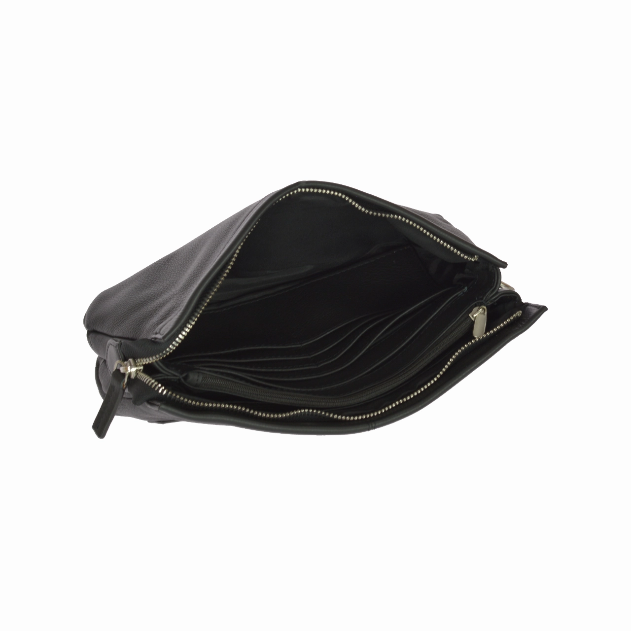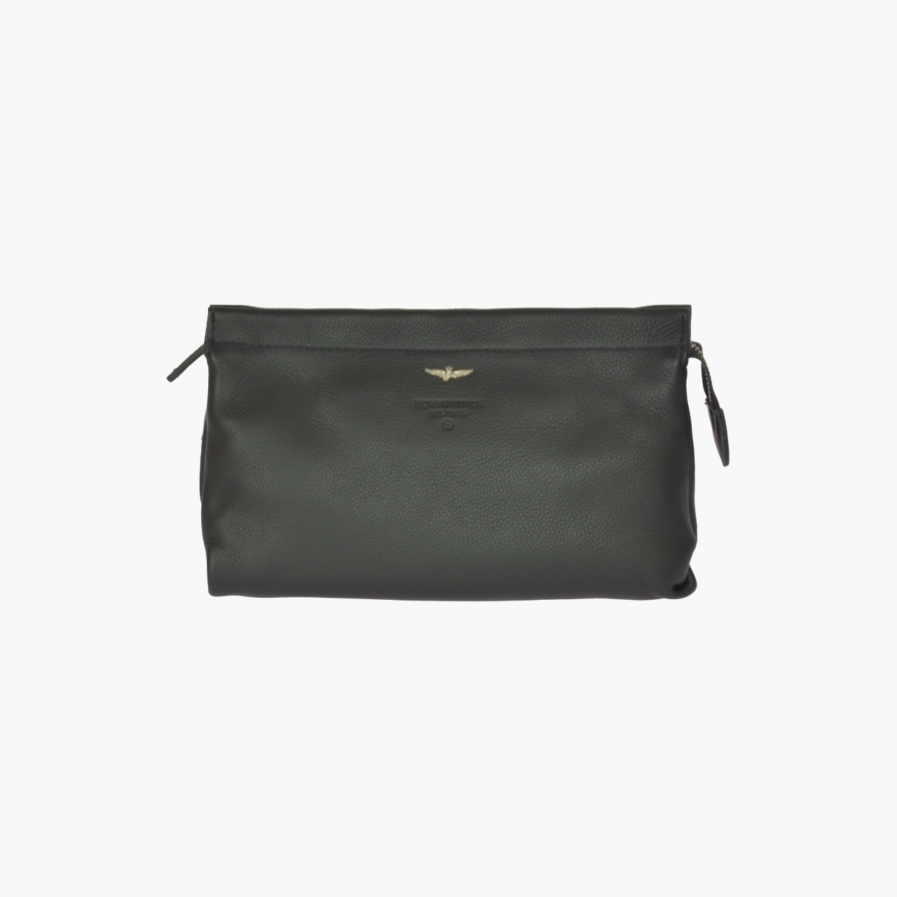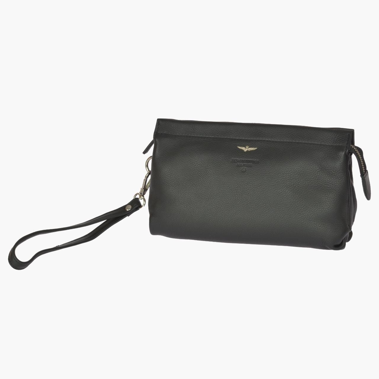 Linee morbide e stile deciso caratterizzano questo borsello in pelle firmato Aeronautica Militare. Dotato di una capiente apertura superiore con zip, offre uno spazio interno ampio e versatile, perfetto per custodire gli oggetti personali di uso quotidiano.