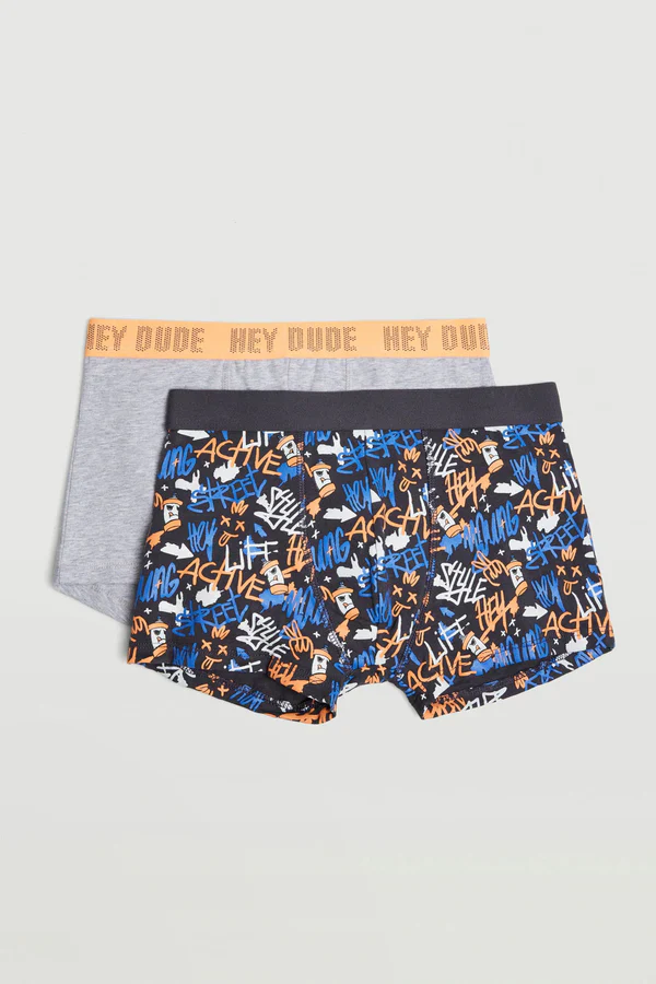 Confezione da 2 boxer in cotone naturale. Tessuto in cotone, le fibre naturali di questo materiale garantiscono morbidezza, adattabilitร e comfort che si allineano alla nuova proposta di intimo giovanile.