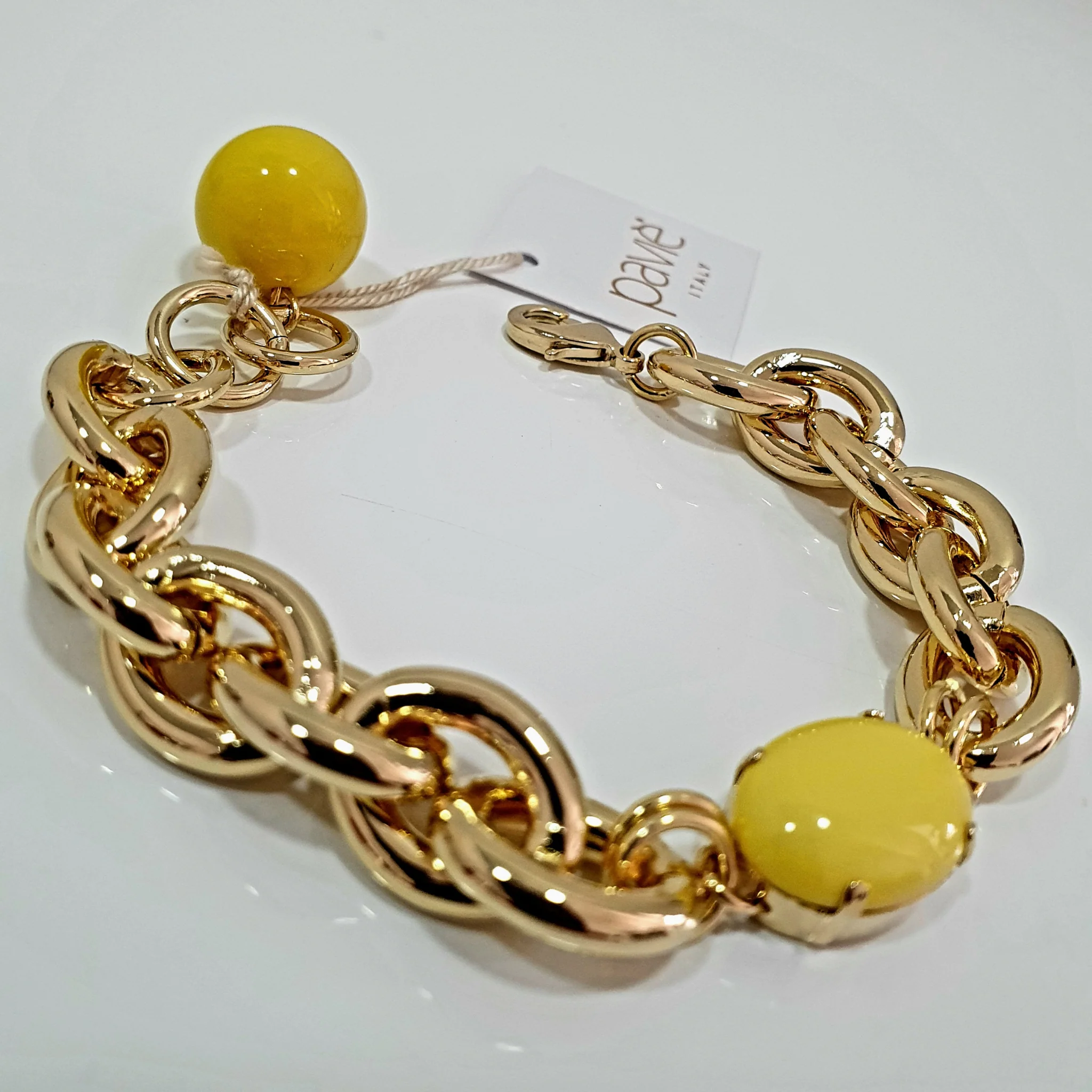 Bracciale catena regolabile Paviè. Composizione: resina, cristallo, metallo ipoallergenico. Nichel free EN 1811/2011 Made in Italy