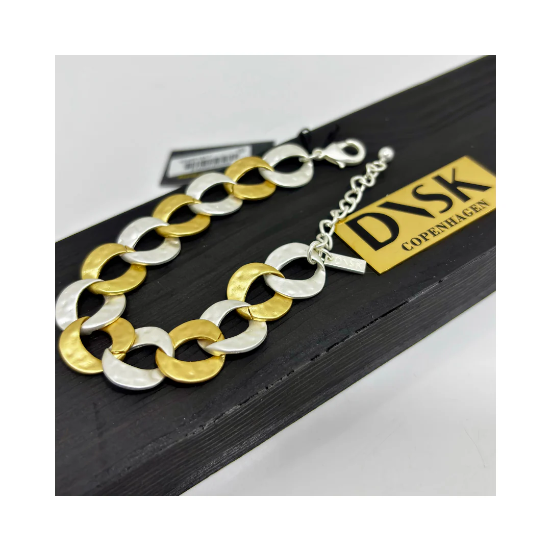 Bracciale Dansk Copenhagen realizzato in metallo con maglia catena, la placcatura alternata oro e argento garantisce un look unico e audace. Con una lunghezza di 18 centimetri + 5 e nichel free, questo bracciale è perfetto per chi ama rischiare e farsi notare!