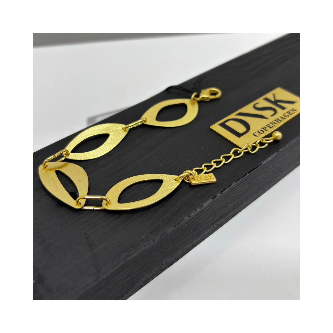 Bracciale Dansk Copenhagen realizzato in metallo con una delicata placcatura oro satinato, questo bracciale aggiungerà un tocco di lusso ai tuoi outfit. Con una lunghezza di 18 centimetri più una catenina di prolunga di 5 centimetri, è adatto a ogni polso. Inoltre, è completamente nichel free, garantendo comfort e sicurezza per la tua pelle. Osare è il tuo stile di vita, e questo bracciale lo esprime perfettamente!