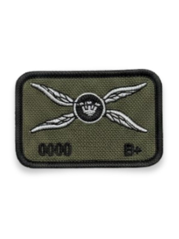 Dettagli Identificativi: La base include le aree ricamate per la numerazione (0000) e l’indicazione del gruppo sanguigno (B+).