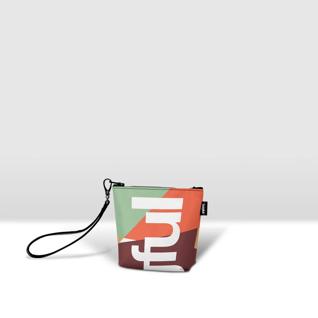 Mini pochette in banner PVC 560, stampato, con zip pressofusa.