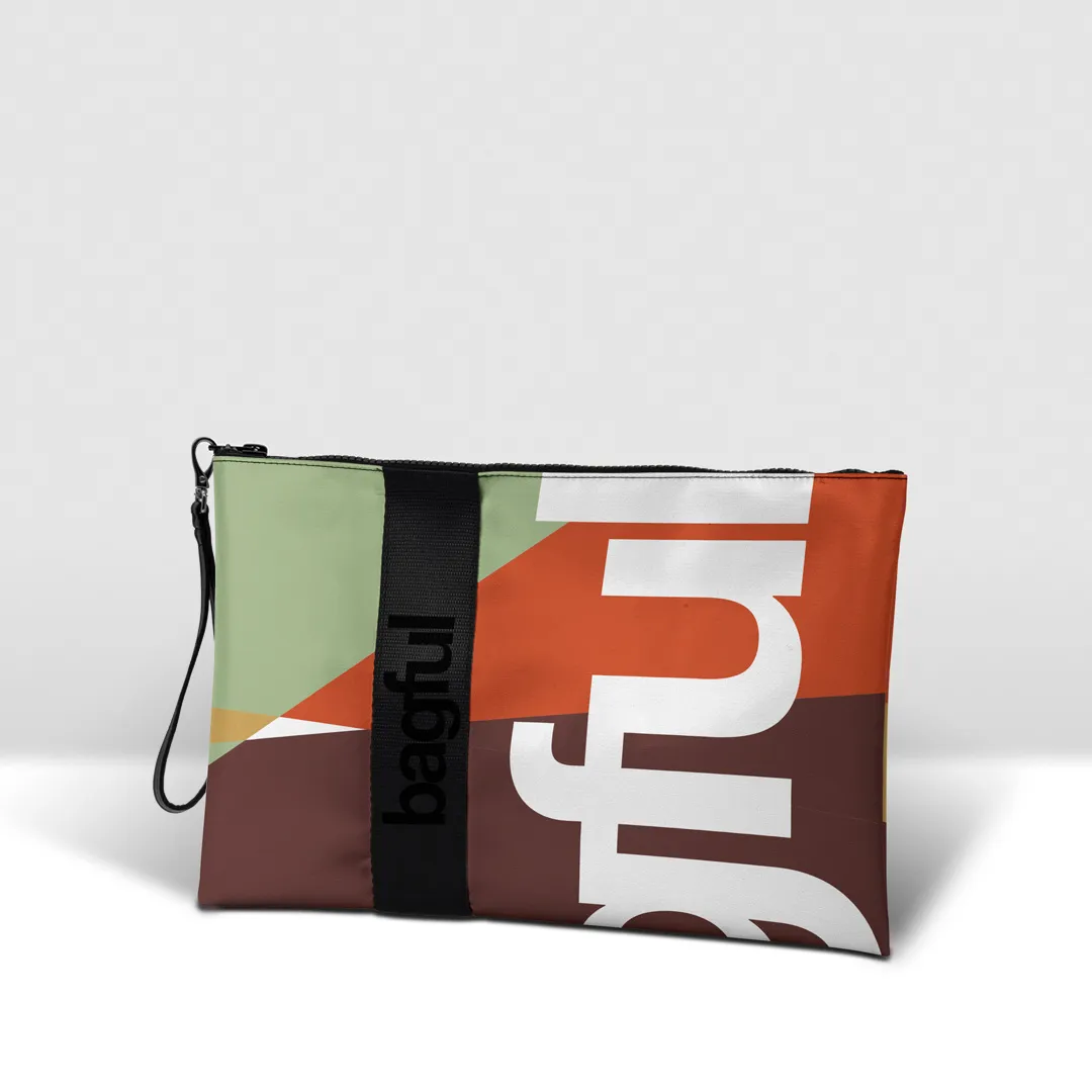 Pochette in banner PVC 560, stampato, con zip pressofusa.