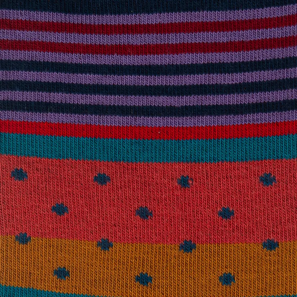 Calzino corto in caldo cotone in fantasia Mix Multicolor di Gallo. L’iconica fantasia a Righe Multicolor è mixata sapientemente alla fantasia a Pois ed è immediatamente riconoscibile, un tratto distintivo del brand. Grazie agli abbinamenti particolari e talvolta eccentrici rifiniscono ogni look e si adattano al meglio ad ogni occasione. La punta e il tallone sono realizzati in contrasto di colore. Il tessuto in caldo cotone è perfetto per la stagione autunno-inverno, per accompagnare i passi di tutta la giornata. Si consiglia di lavare ad una temperatura massima di 30°, non candeggiare e non stirare.