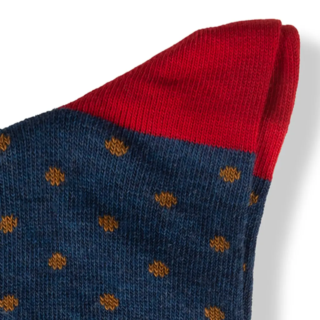 Calzino corto in caldo cotone in fantasia Pois di Gallo. L’iconica fantasia a Pois è immediatamente riconoscibile ed è, insieme alla Riga Multicolor, un tratto distintivo del brand. Con i loro abbinamenti particolari e talvolta eccentrici rifiniscono ogni look e si adattano al meglio ad ogni occasione. La punta e il tallone sono realizzati in contrasto di colore. Il tessuto in caldo cotone è perfetto per la stagione invernale grazie al tepore e al comfort che dona al piede. Si consiglia di lavare ad una temperatura massima di 30°, non candeggiare e non stirare.