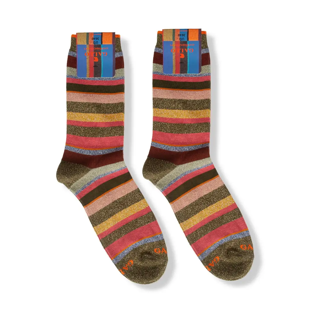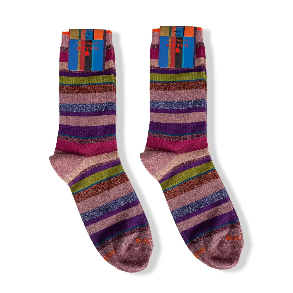 Calzino donna corto in fantasia Righe Multicolor lurex | Gallo