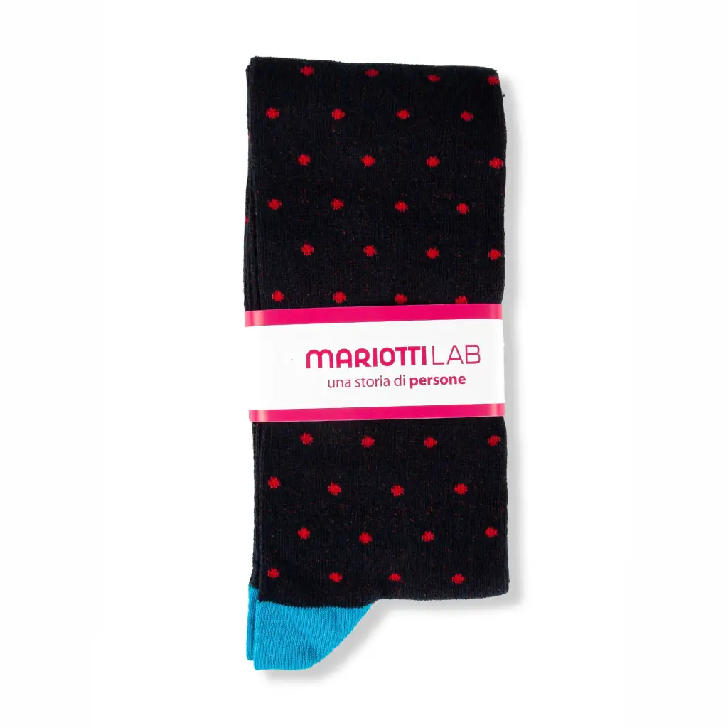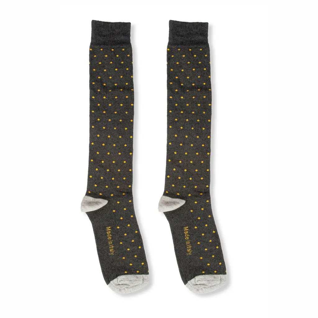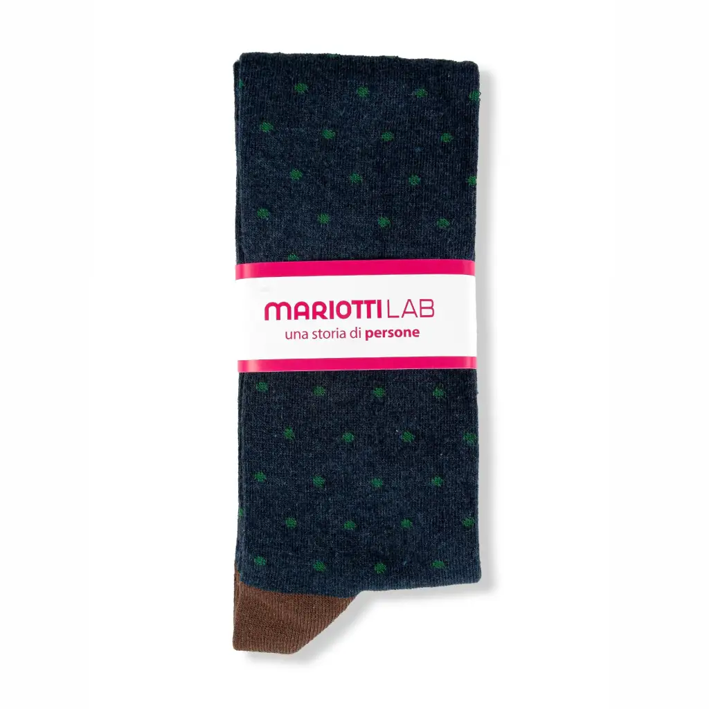 Calzino lungo in fantasia della linea Pois Melange di Mariotti Lab. Questa linea di calzini si caratterizza per una fantasia semplice e sempre di tendenza che si addice a contesti moderni ma anche più formali. Declinata in 4 varianti colore, la fantasia della linea Pois Melange è particolare e dallo stile minimal. Il cotone è caldo e morbido, perfetto per l’inverno. Il modello lungo dona un tocco elegante al look, mentre la fantasia a pois gli dona un twist colorato. Tutti i calzini della linea Mariotti Lab sono interamente Made in Italy, dalla progettazione alla realizzazione.Perfetto anche come idea regalo.- Calzini lunghi in fantasia- Tessuto caldo invernale- Made in Italy- Brand: Mariotti Lab- Riferimento articolo: LABPOISMELANGEUL- Composizione: 95% Cotone, 5% Elastan