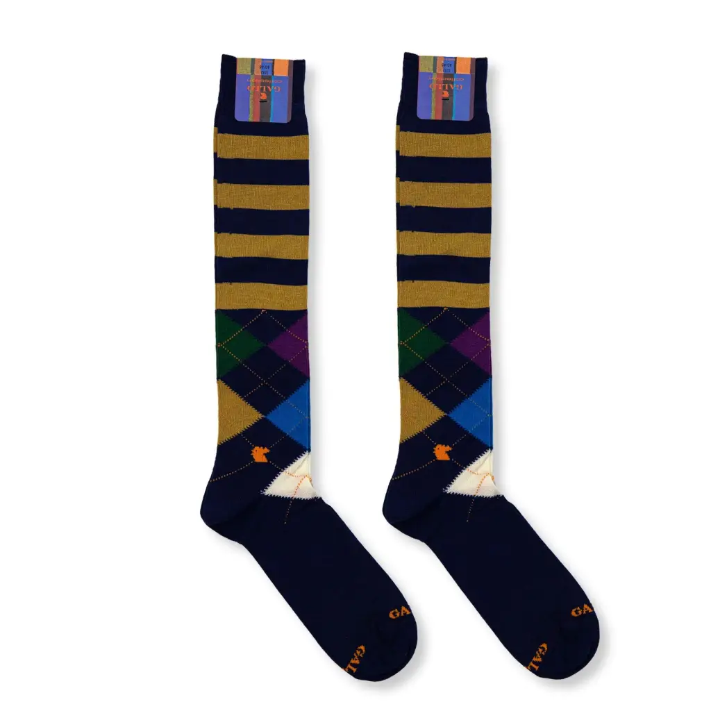 Calzino lungo uomo in cotone leggero Riga e Intersio | Gallo