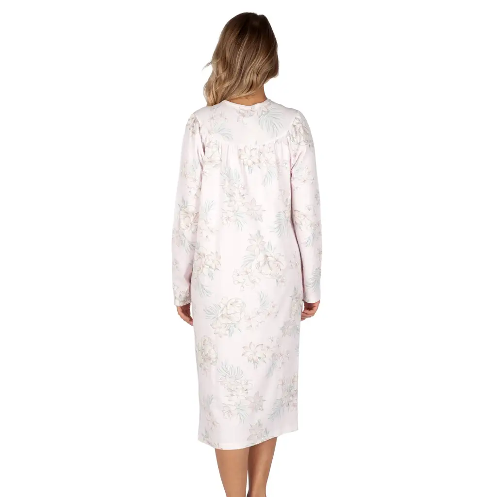 CAMICIA DA NOTTE A SERAFINO CON SPRONE A MANICA LUNGA IN FANTASIA FIORE IN CALDO COTONE INTERLOCK | LINCLALOR