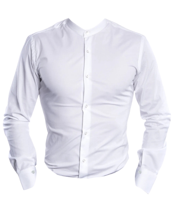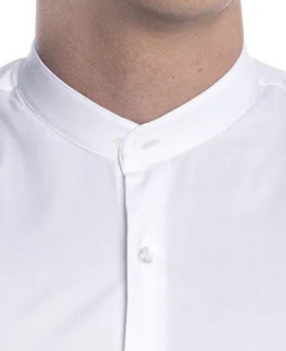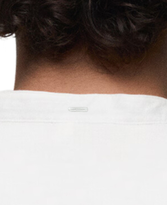 - Dettaglio con asola sul retro del collo: elemento funzionale per mantenere il colletto rigido nella giusta posizione.