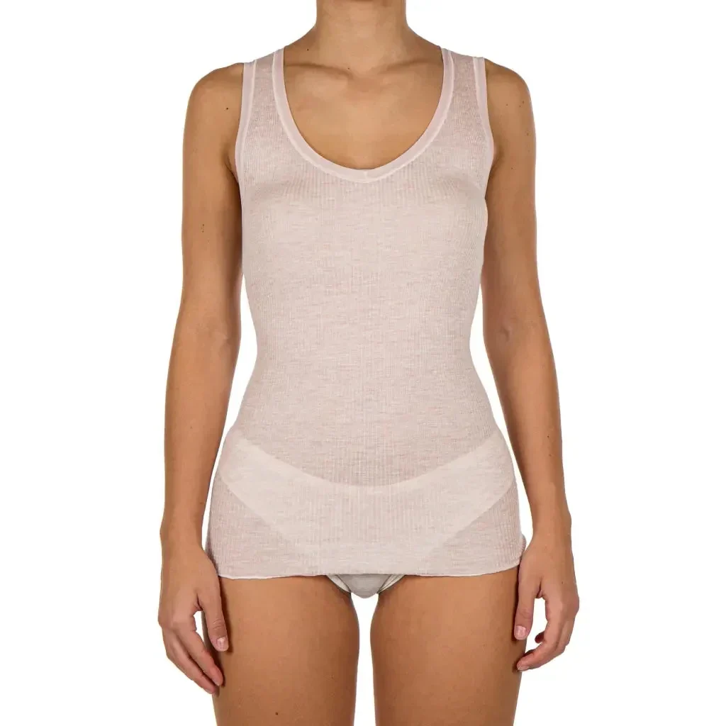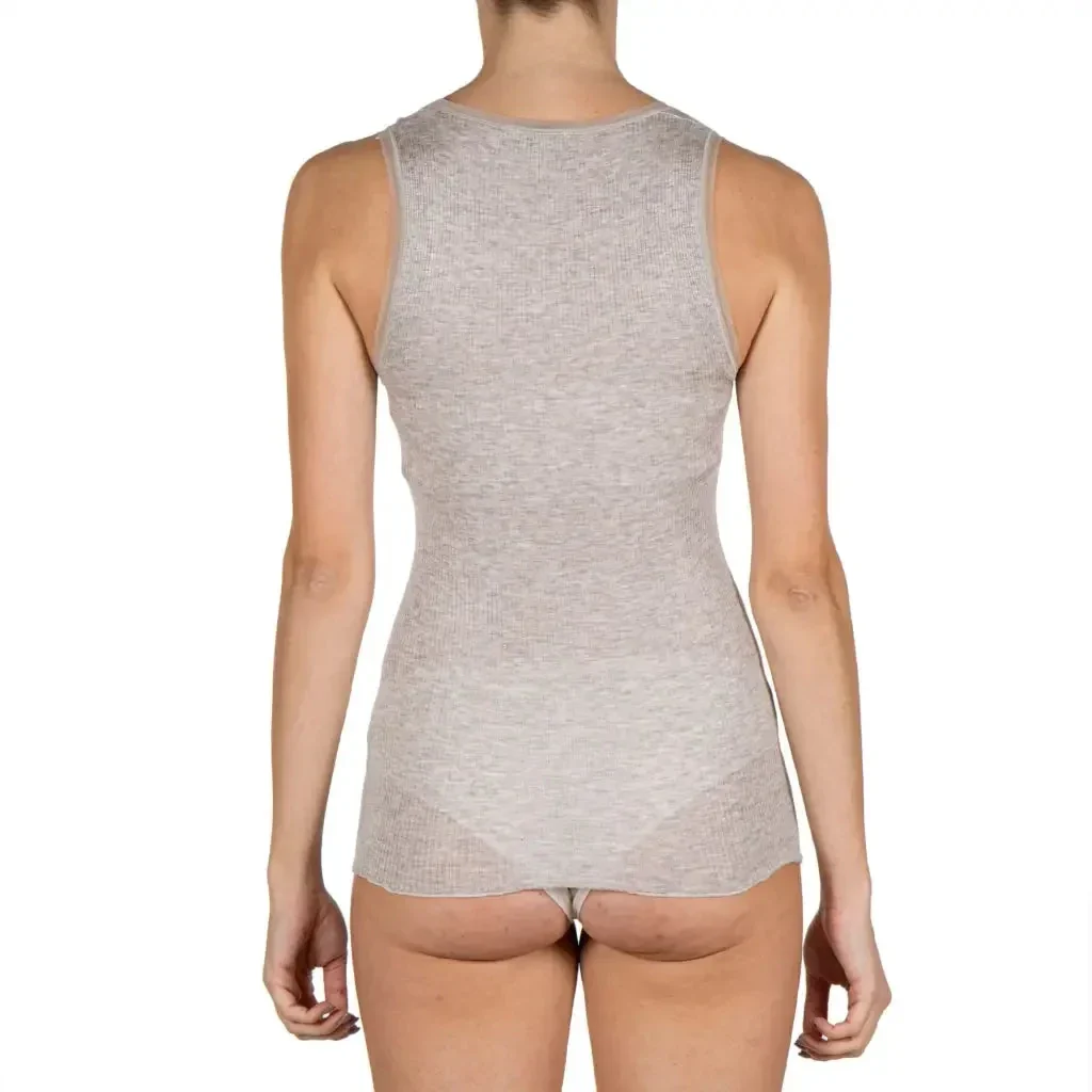 Canottiera sottogiacca donna scollata a V con tulle a costina in Modal e Cashmere di Mariotti Lab