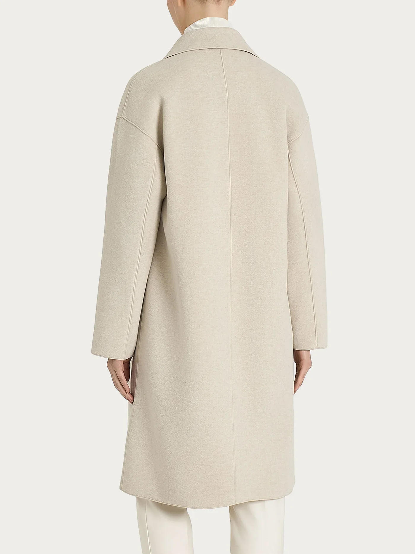 Cappotto lungo da donna in Vegan Wool. Definito dal collo con revers e dalla chiusura a tre bottoni, questo modello esprime unโeleganza senza tempo e una struttura pulita e ben delineata. Questo cappotto in vegan wool rappresenta una scelta stilistica attenta, capace di coniugare comfort, sostenibilitร e unโestetica contemporanea. Le tasche applicate completano il design con una nota funzionale, ideali per tenere a portata di mano ciรฒ che serve. Realizzato in vegan wool, unโalternativa etica alla lana tradizionale, garantisce calore, morbidezza e resistenza, offrendo una texture piacevole al tatto e un look raffinato.