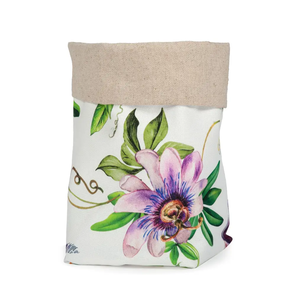 Cestino porta pane in cotone e tessuto antimacchia della linea Anastasia di Zita del Forte. Questi prodotti sono tutti confezionati in Toscana ed esaltano al meglio il gusto della tradizione toscana e dell’estetica. Il porta pane a cestino è realizzato con fodera interna in 100% Cotone e tessuto esterno antimacchia in fantasia con stampe ad alta definizione. La linea Anastasia si contraddistingue per una stampa di fiori coloratissimi e piccoli colibrì altrettanto colorati e vivaci su un fondo panna che ne fa risaltare i meravigliosi colori. Il tessuto antimacchia e antipiega è caratterizzato da una mano setosa e morbida che, grazie all’intreccio delle fibre, non necessita di stiratura. Per il corretto mantenimento del cestino porta pane si consiglia un lavaggio a massimo 30° e l’asciugatura naturale all’aria.
