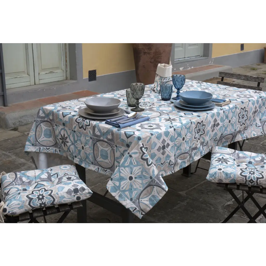 La linea Elena di Zita del Forte si compone anche di grembiule con pettorina e tovaglie di varie dimensioni.