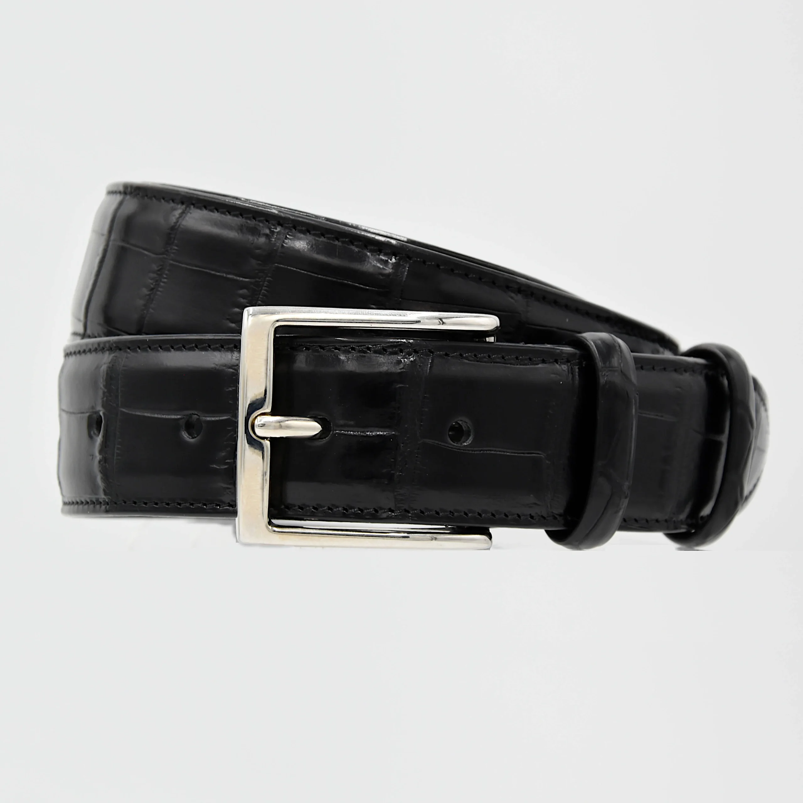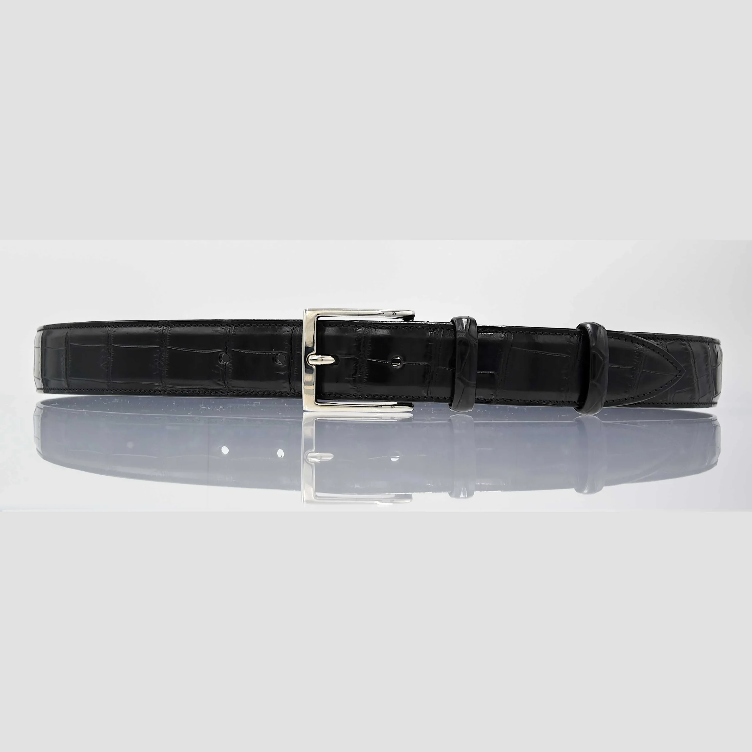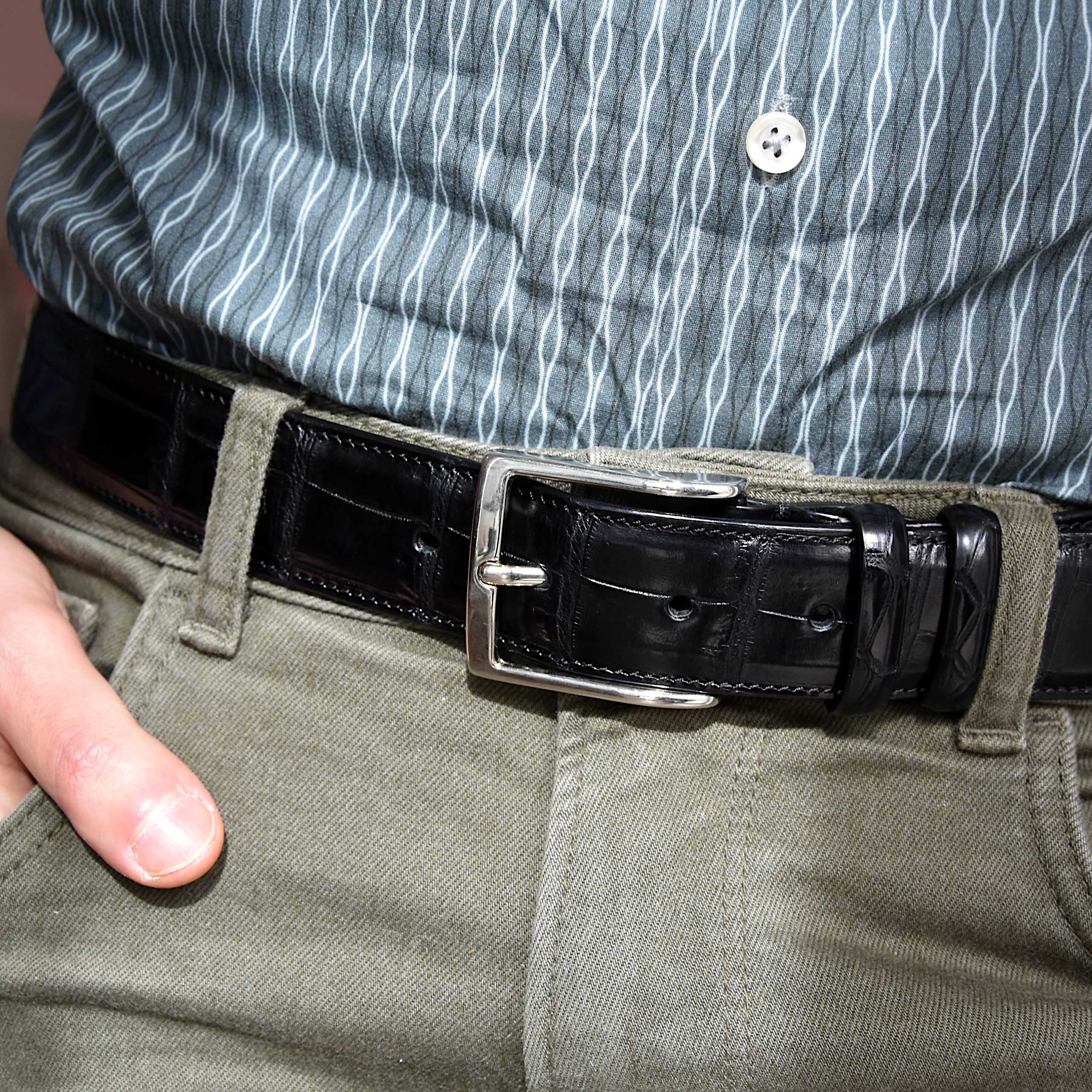 Cintura Uomo in vera pelle di Coccodrillo Nero Personalizzabile