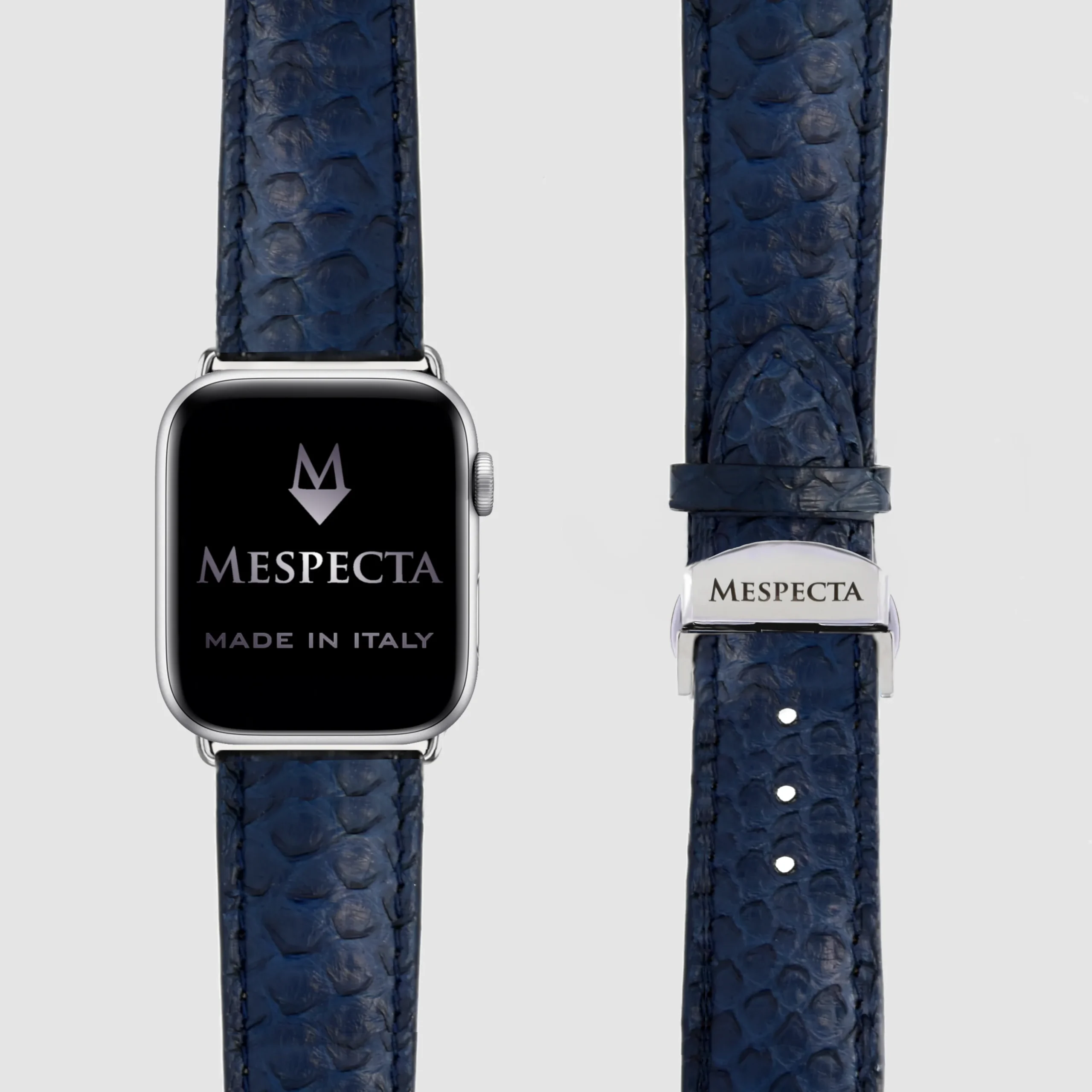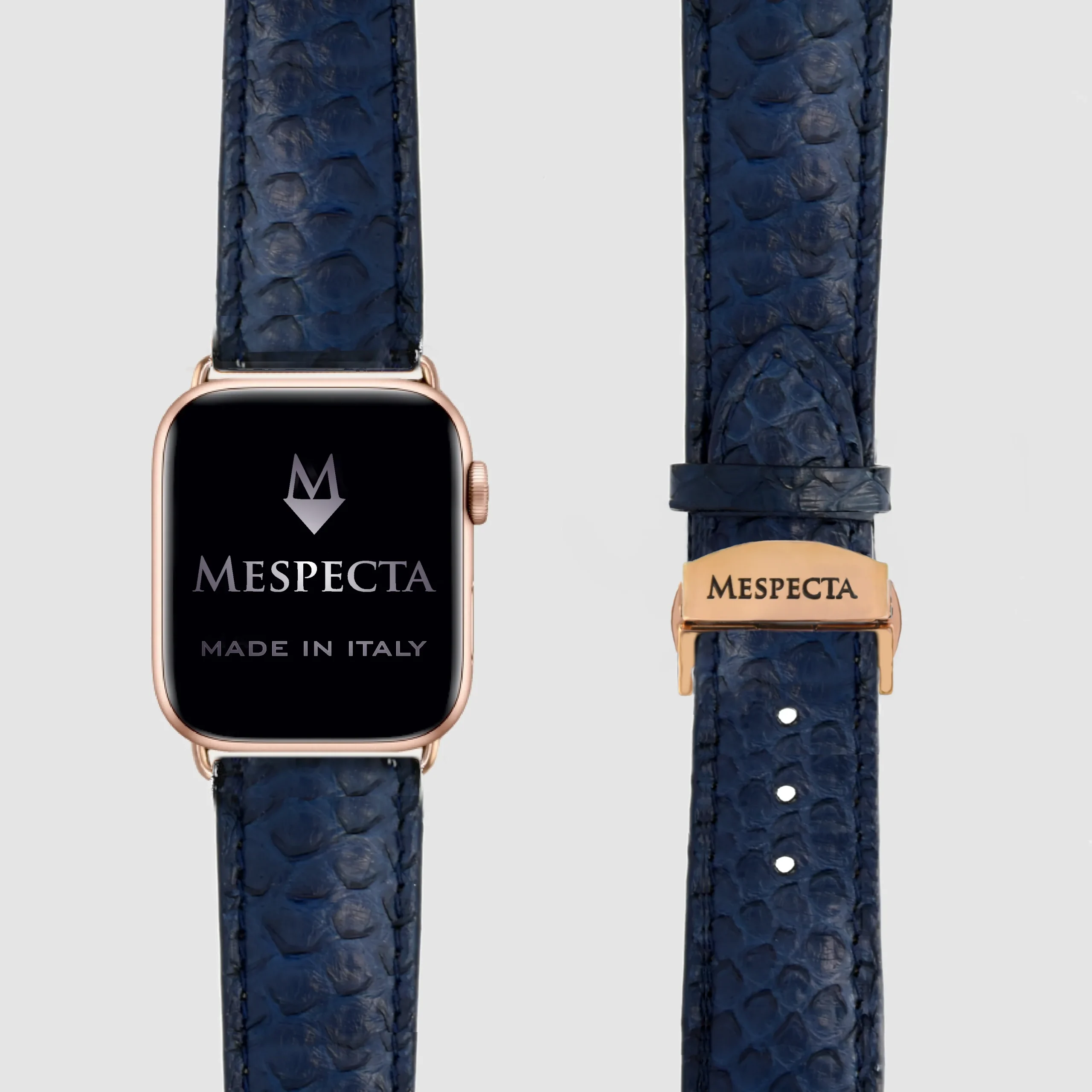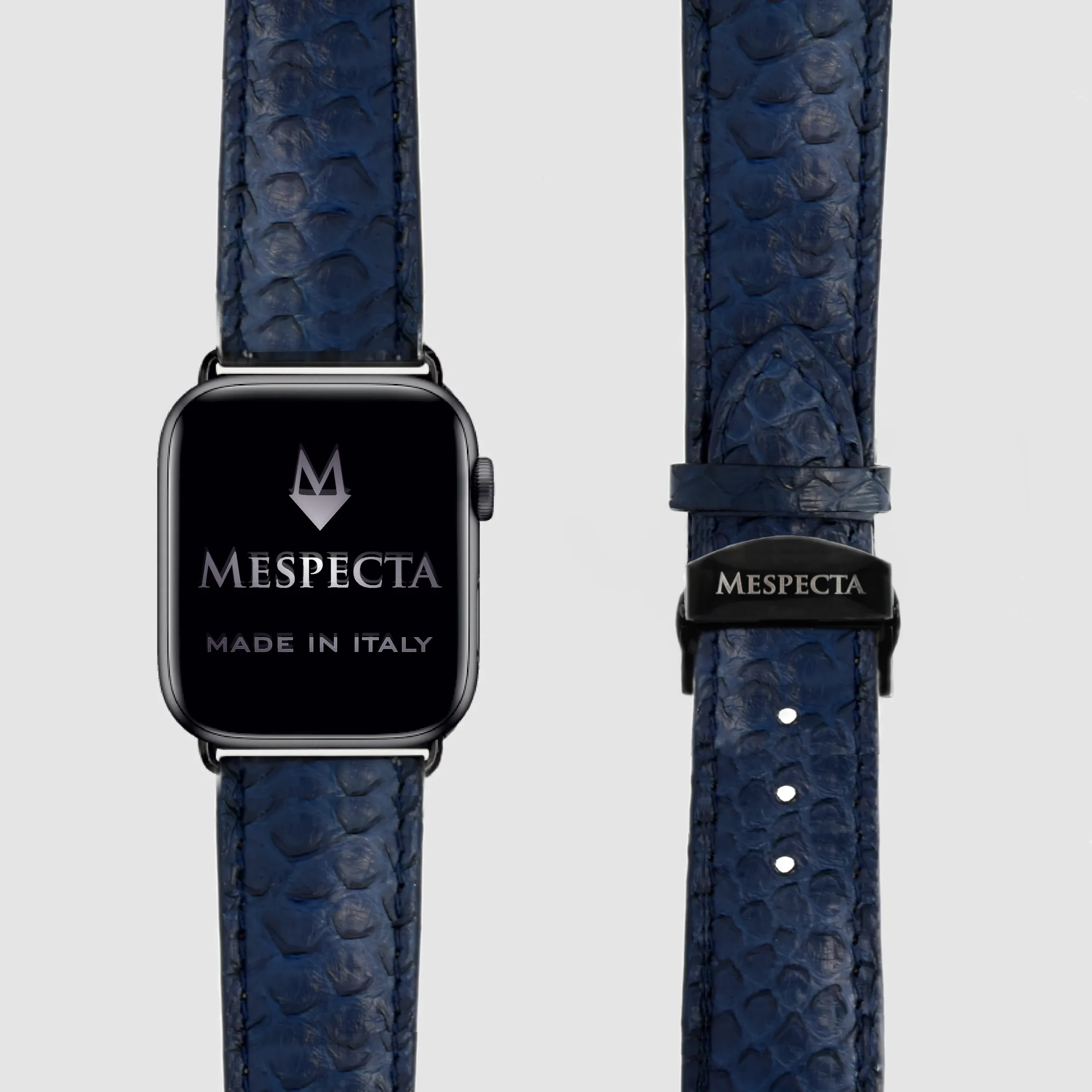 Cinturino Apple Watch in Pelle di Pitone blu navy– Personalizzabile (Ultra, Serie 4–10, SE)