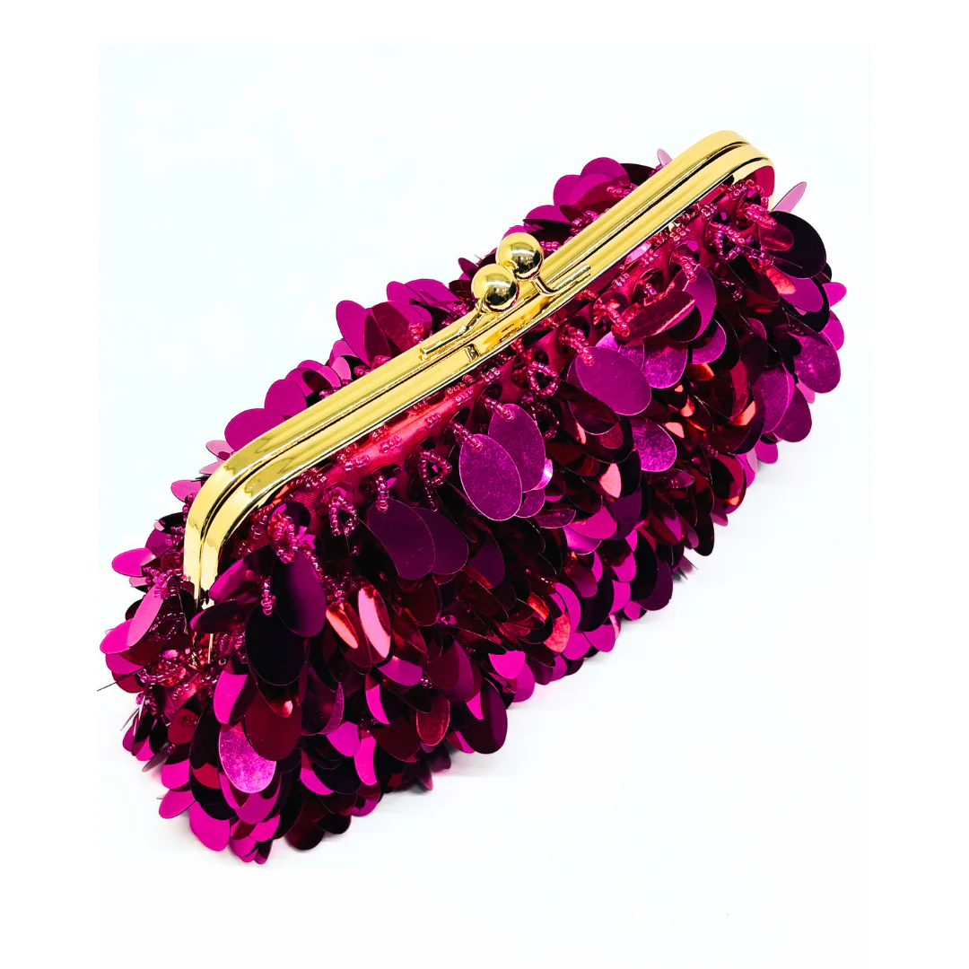 Clutch realizzata con paillettes con catena removibile. Aggiungi un tocco di luccichio al tuo look. Le paillettes cattureranno la luce e attireranno gli sguardi. Le sue dimensioni di 20 x 13 x 6 cm la rendono abbastanza spaziosa da contenere tutti i tuoi oggetti essenziali.