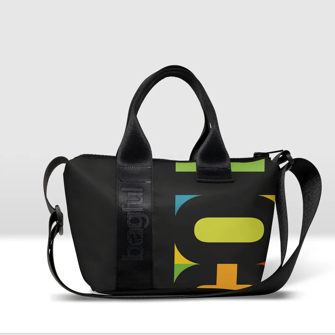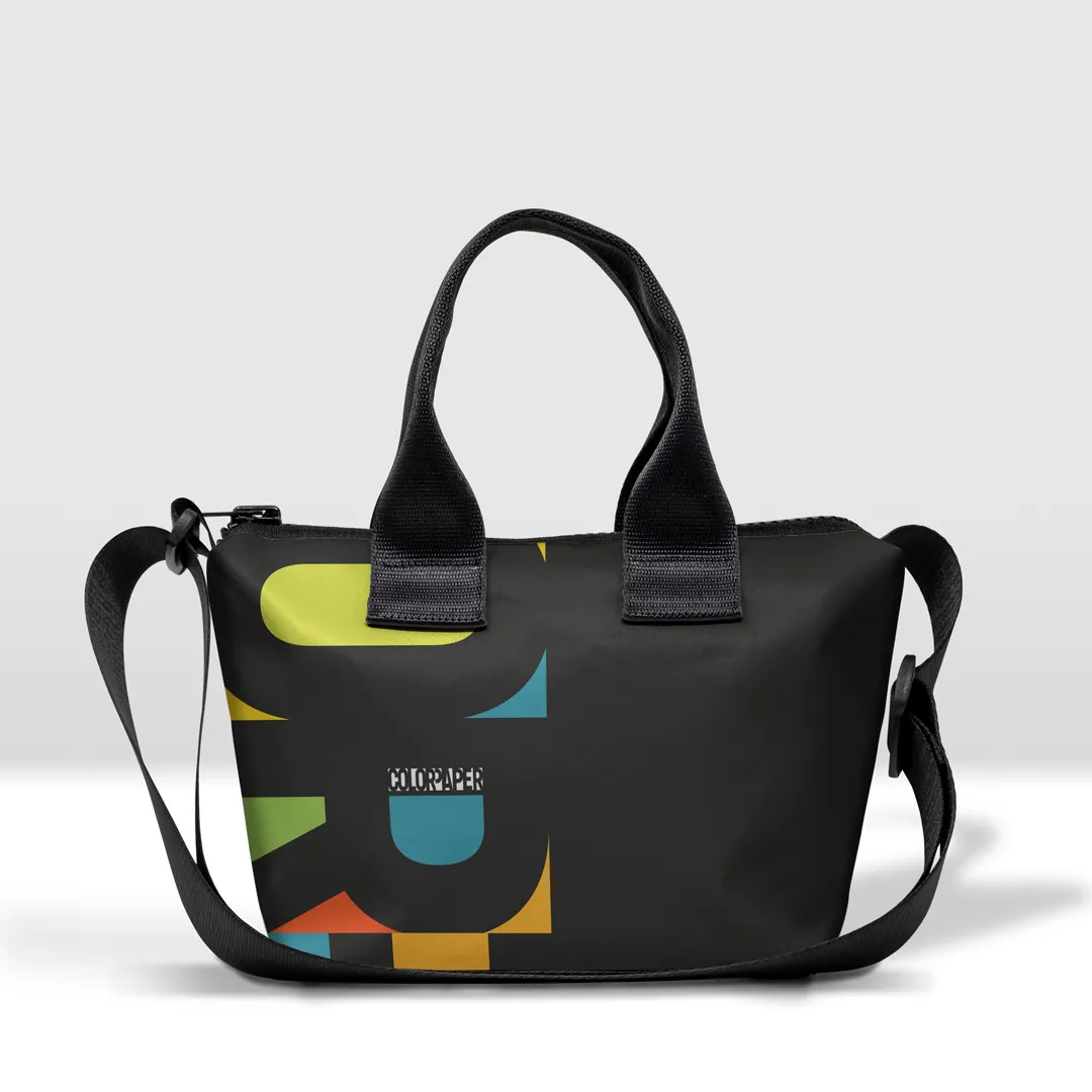Borsa in banner PVC stampato, zip esterna pressofusa con bordo in tessuto, taschino interno con zip pressofusa, imbottita sul fondo e con possibilità di aggiungere una tracolla. Cinghia prodotta con cintura di sicurezza, brandizzata con incisione laser.