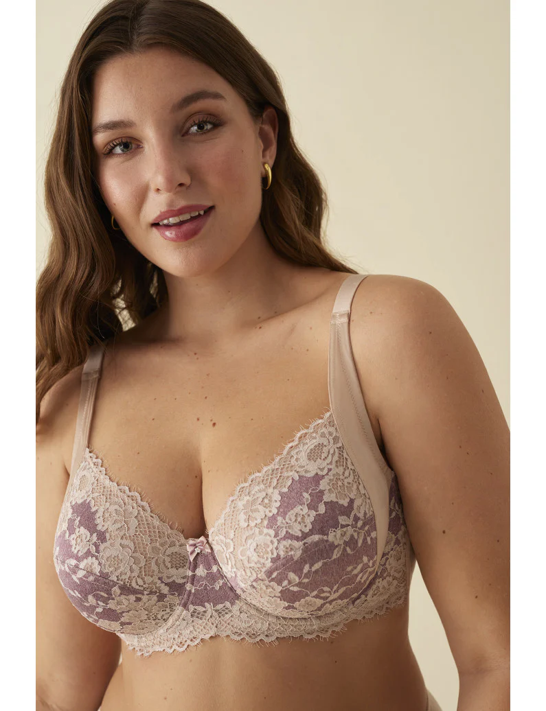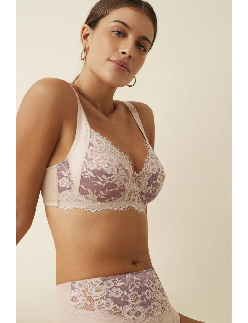 Reggiseno con ferretto coppa morbida in pizzo color rosa antico