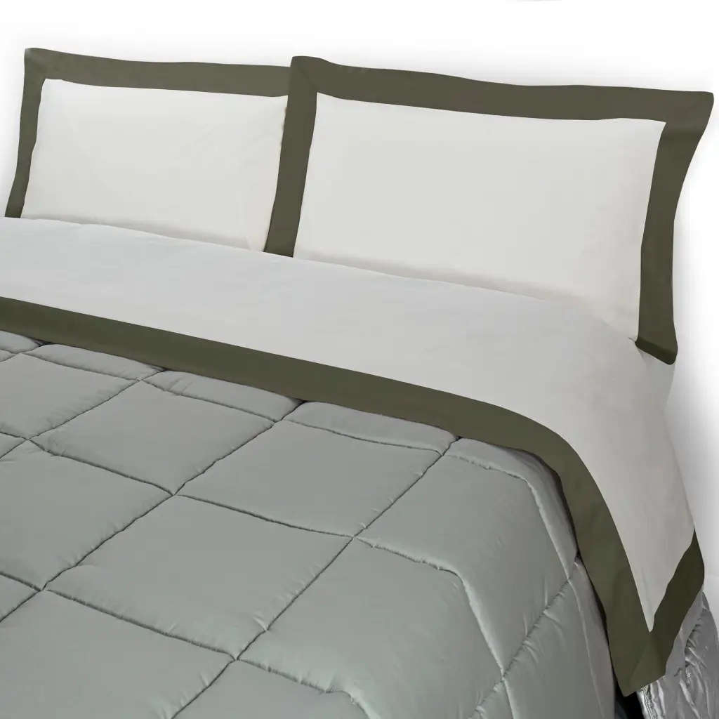 - Il lenzuolo sotto รจ interamente realizzato in tinta unita, sempre in puro cotone ed รจ dotato di angoli con elastici alti 30 cm per garantire una comoda e perfetta vestizione del materasso