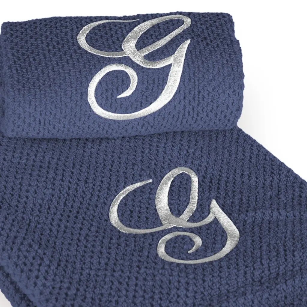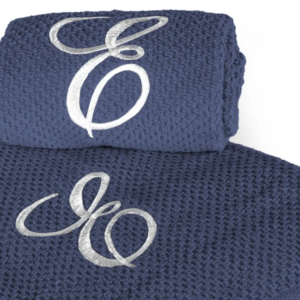 Coppia 1+1 in spugna di cotone a Chicco di Riso ricamata Blu Navy | Maison Sucrée