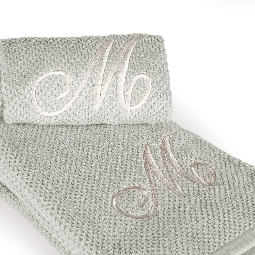 Coppia 1+1 in spugna di cotone a Chicco di Riso ricamata Grigio Perla | Maison Sucrée