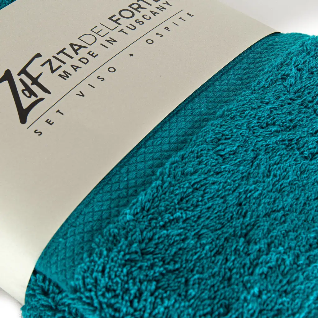 Morbida ed elegante coppia di spugna in puro cotone della linea Versilia di Zita del Forte. Il brand Zita del Forte è caratterizzato da un’elevata qualità dei tessuti e materiali utilizzati e una sempre costante e nuova ricerca dei modelli e degli abbinamenti cromatici più innovativi. La coppia di spugna si compone di un asciugamano da viso e un asciugamano ospite più piccolo. Entrambi sono rifiniti con una piccola greca in tono su tono che conferisce loro un allure raffinato e delicato. La coppia in spugna Versilia si coordina perfettamente all’accappatoio unisex e al telo doccia del brand Zita del Forte.