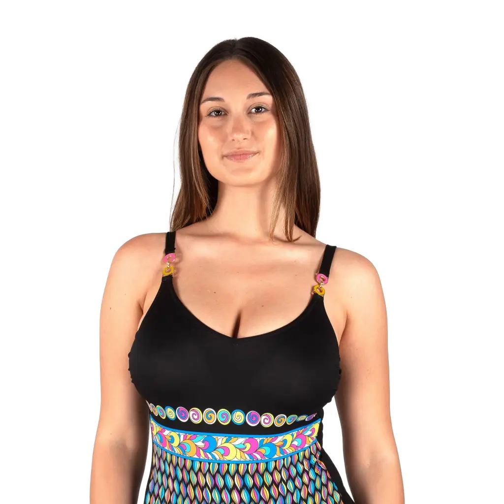 Costume intero imbottito senza ferretto con fantasia piazzata della linea Las Vegas di Giadamarina. Prodotto interamente in Italia, questo modello viene valorizzato dalla fantasia piazzata, molto elegante e raffinata che unisce colori brillanti ad una fantasia che crea otticamente un taglio sotto al seno e slancia la figura. Un insieme di colori che si armonizzano tra di loro e che non stancano mai l’occhio impreziosito da applicazioni che impreziosiscono le spalline. Il tessuto è morbido e non segna ma allo stesso tempo sostenuto e presenta anche spalline regolabili. Scopri qui tutti i modelli della fantasia Las Vegas.