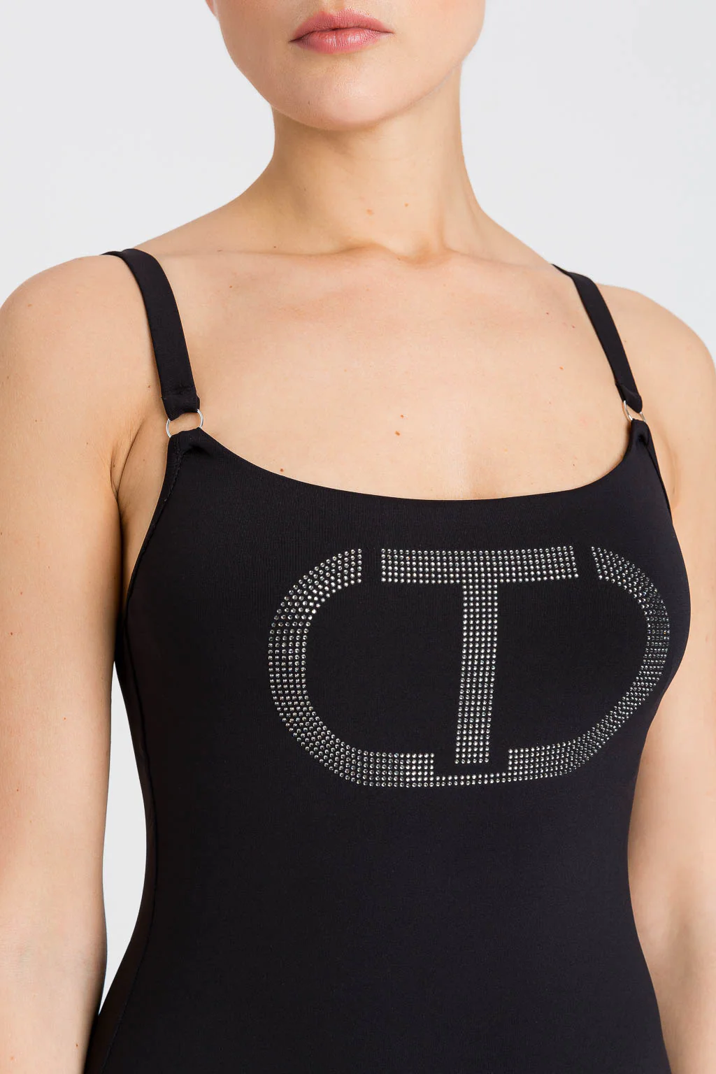Esalta la tua femminilitร con il costume intero nero Twinset, con bretelline regolabili e ferretto per un sostegno perfetto. Lo scollo dietro e i dettagli in strass sul davanti aggiungono un tocco di eleganza e glamour. Indossa questo costume e sarai l’incarnazione della bellezza sofisticata.
